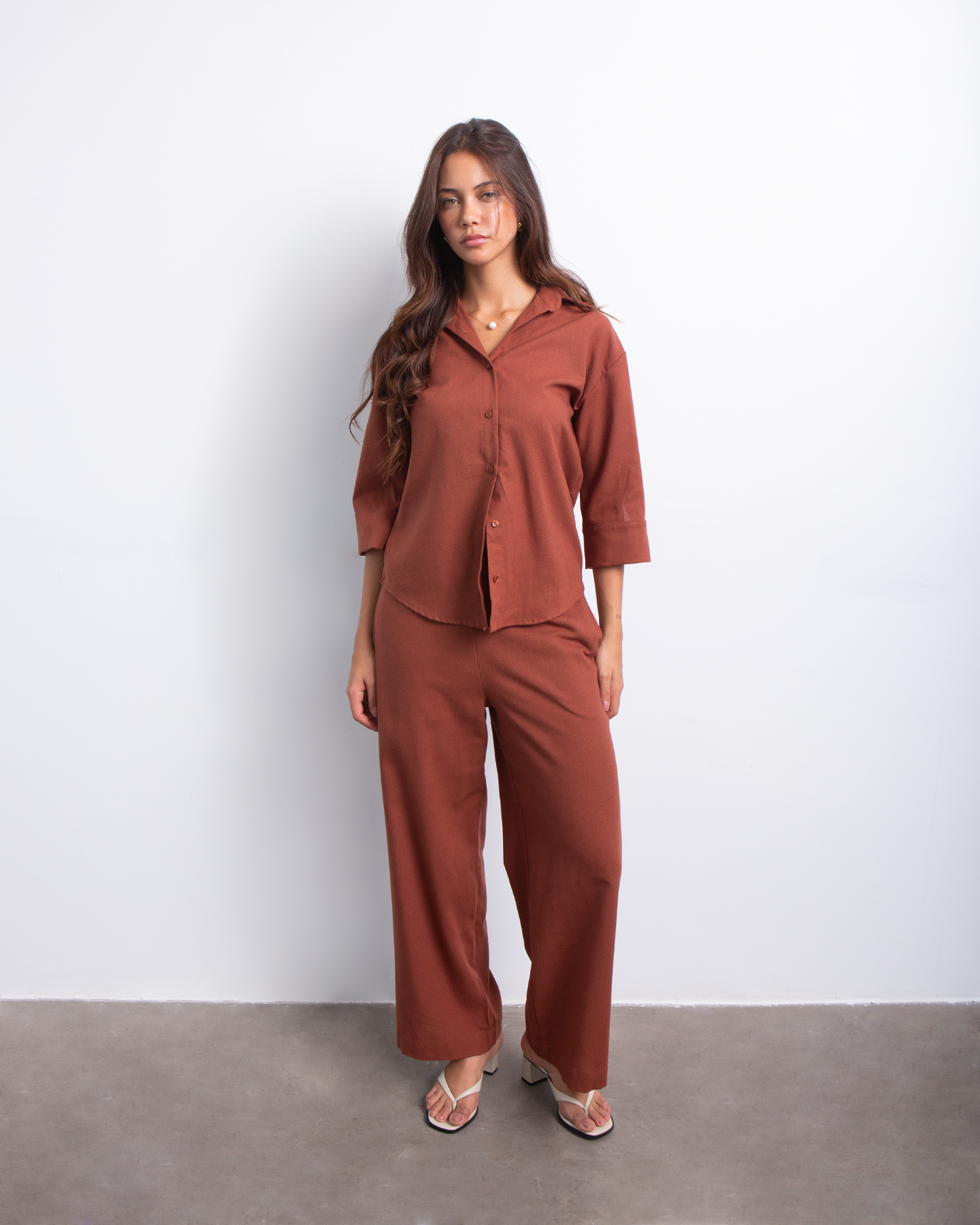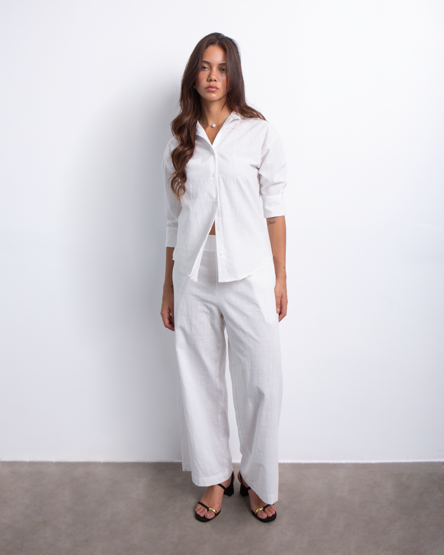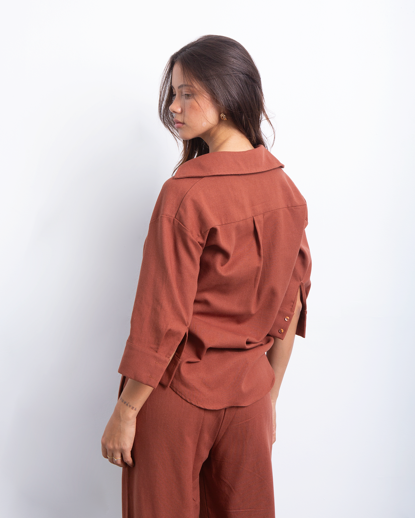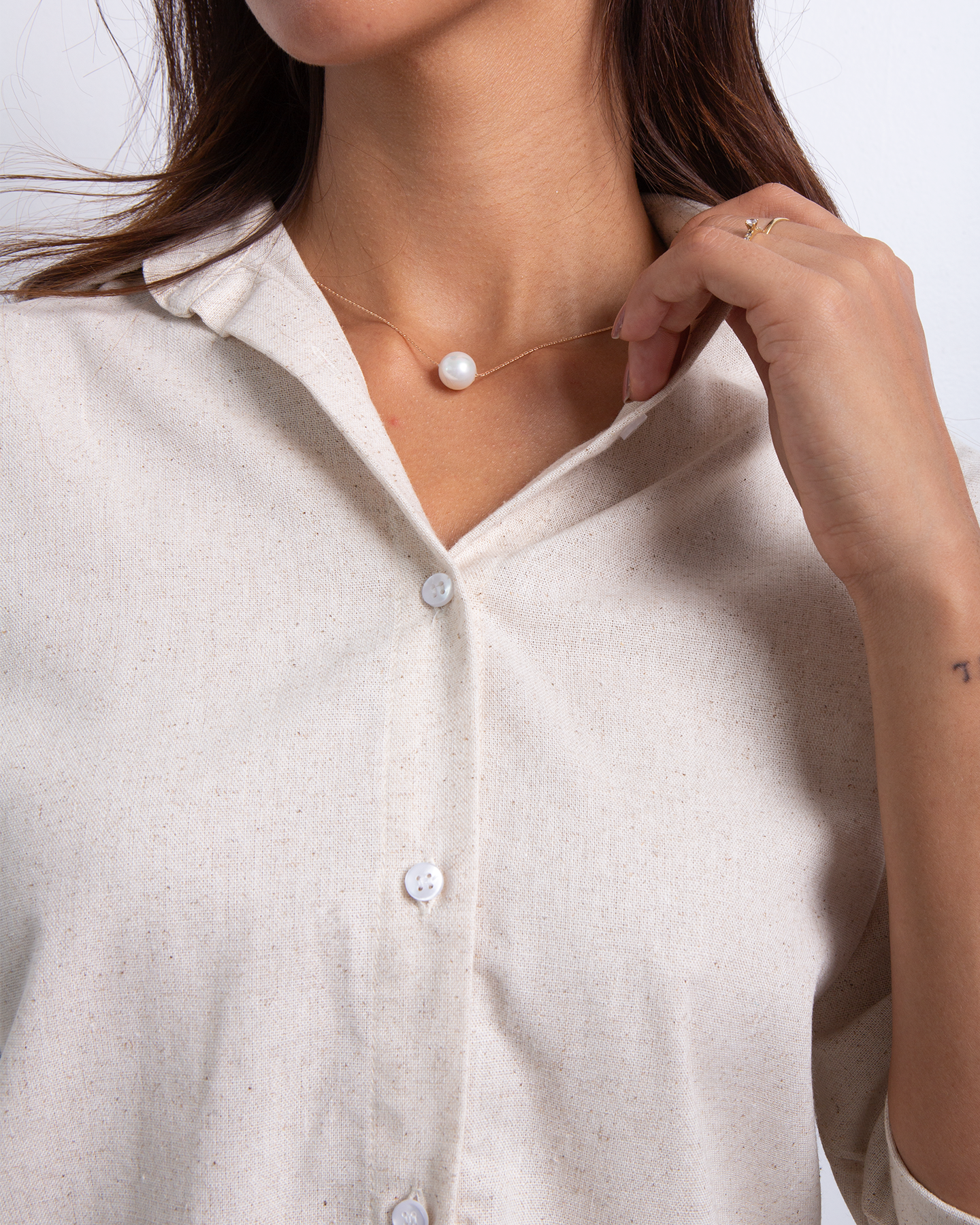 La Camisa Camila es esa prenda fácil de llevar que transforma cualquier look con su caída liviana y su corte relajado. Su diseño minimal con botones al frente y mangas 3/4 la hace ideal para usar tanto cerrada como abierta, creando capas con tops básicos. Perfecta para días cálidos, salidas casuales o looks de oficina con un twist relajado.