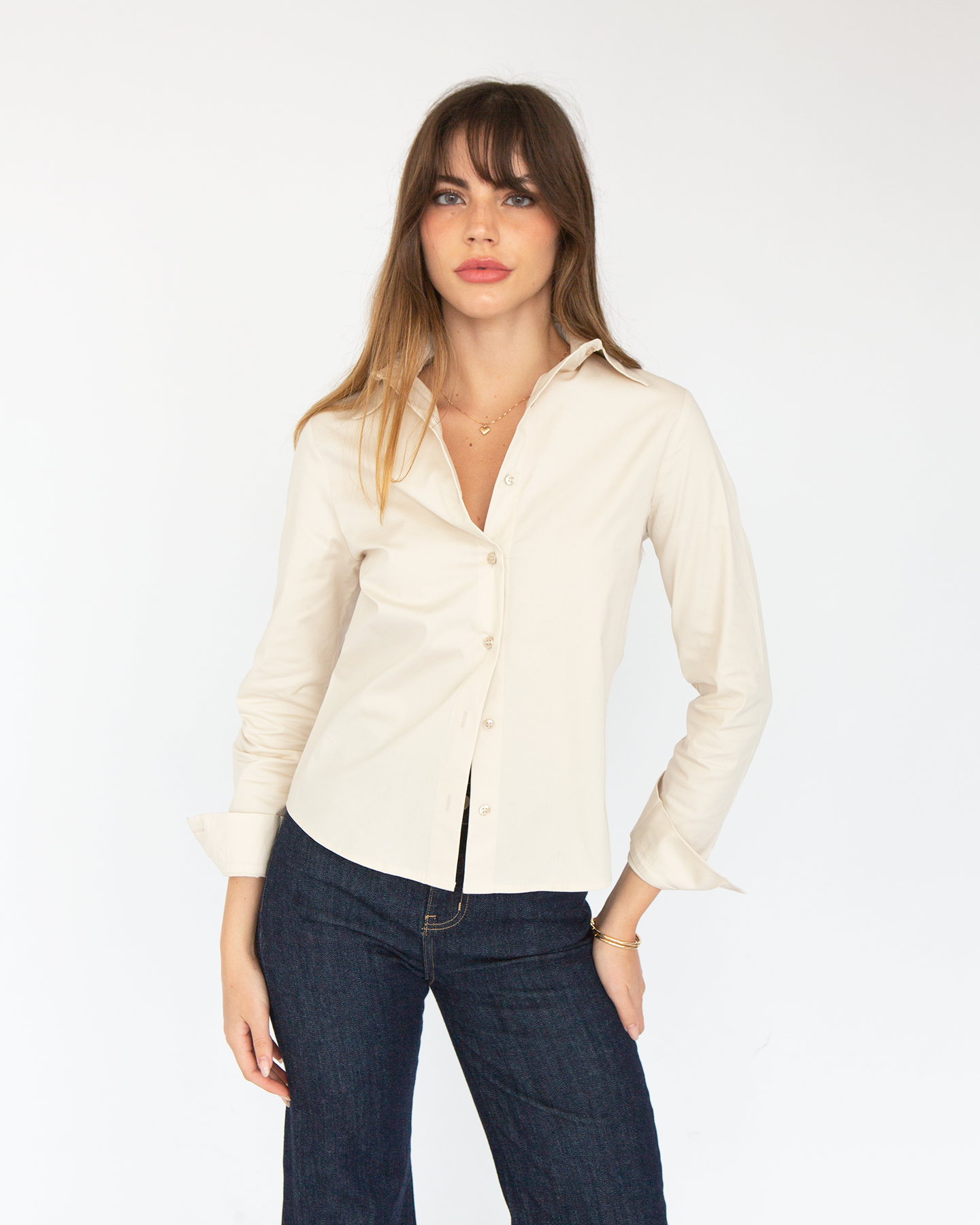 Una camisa para elevar tus looks. Su corte entallado estiliza la silueta sin perder comodidad. Su estructura clásica y mangas largas la hacen perfecta para elevar desde outfits de oficina hasta combinaciones más relajadas.