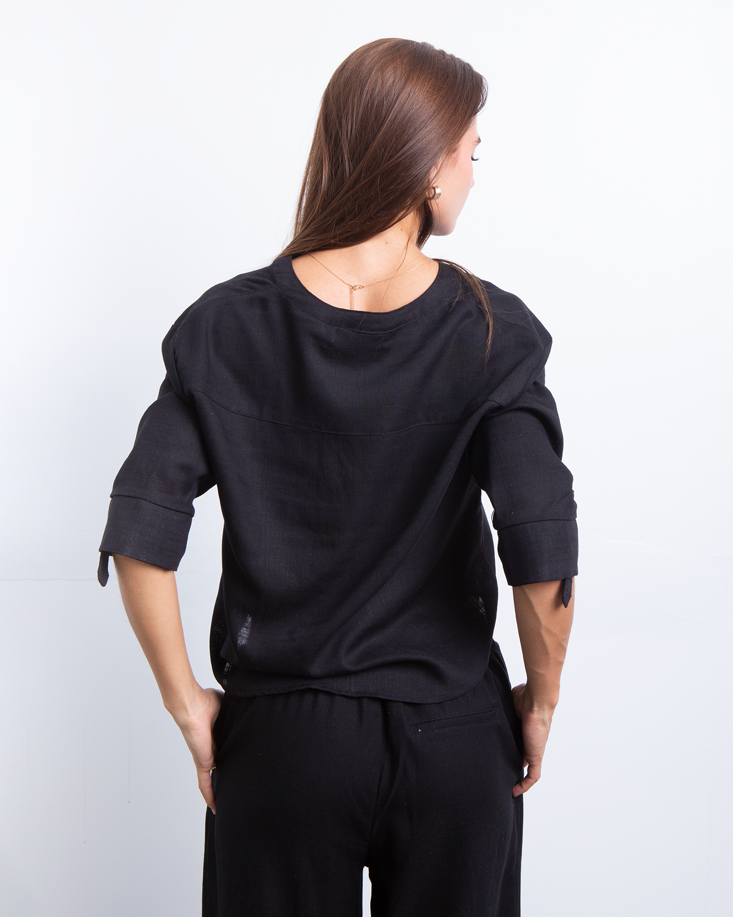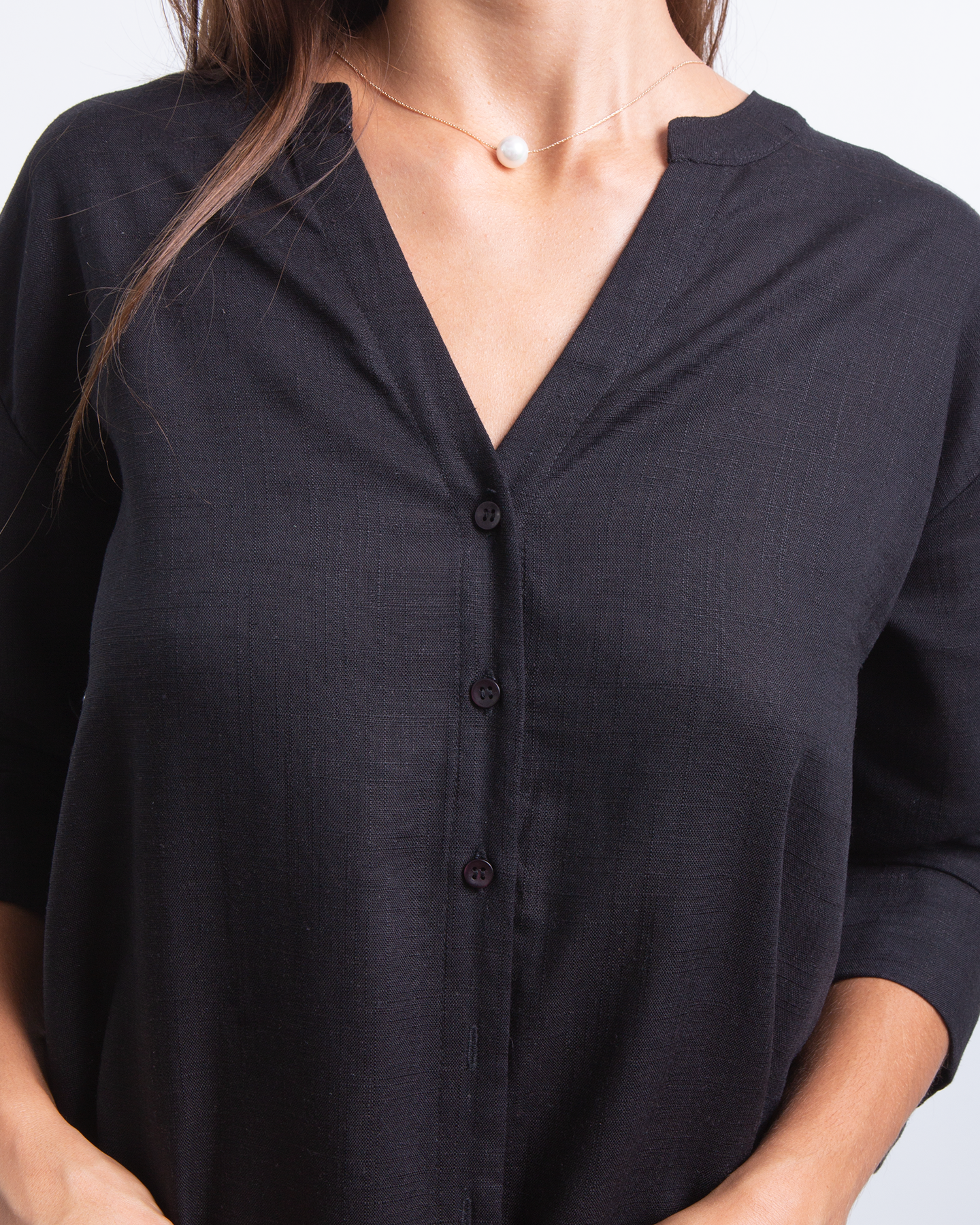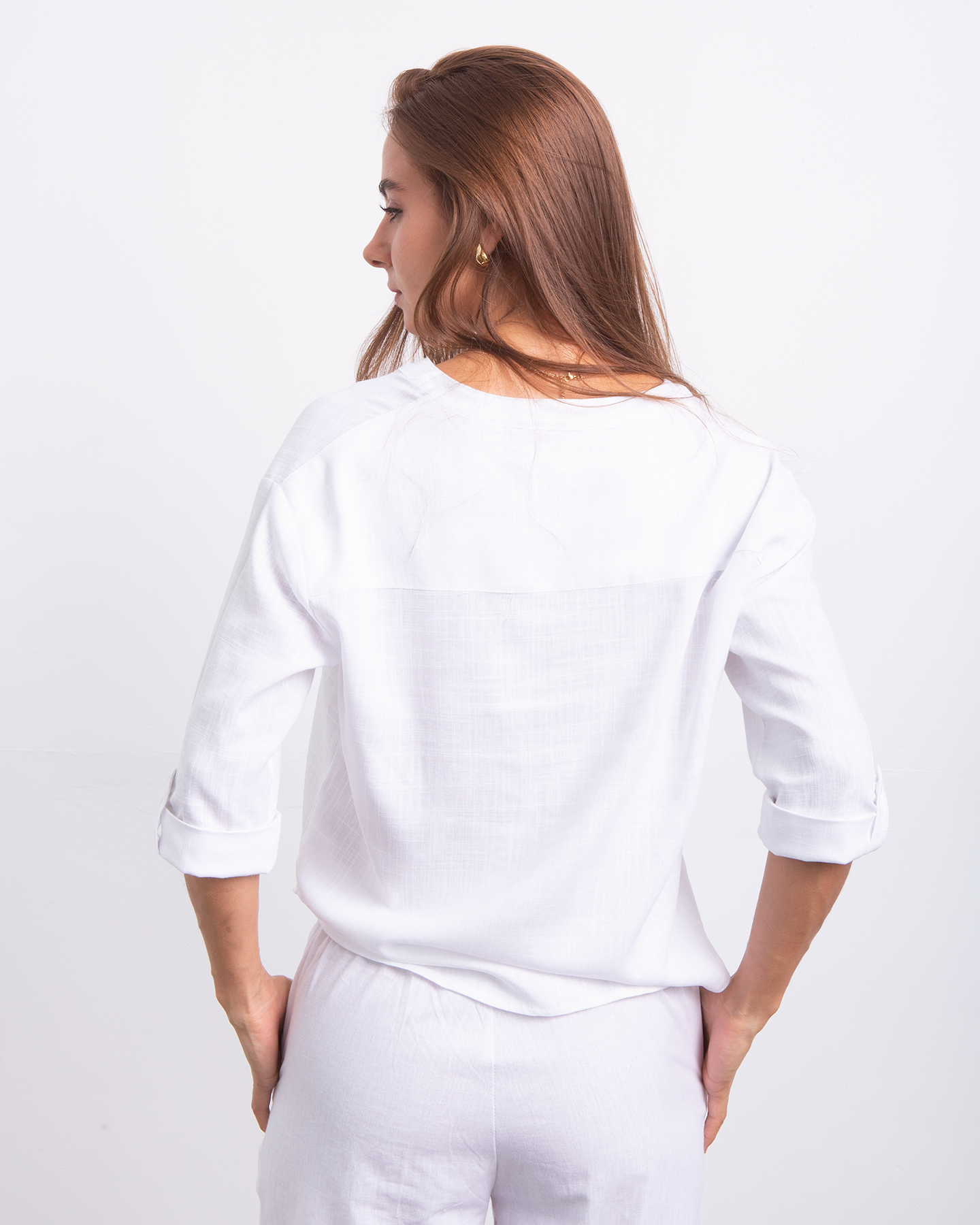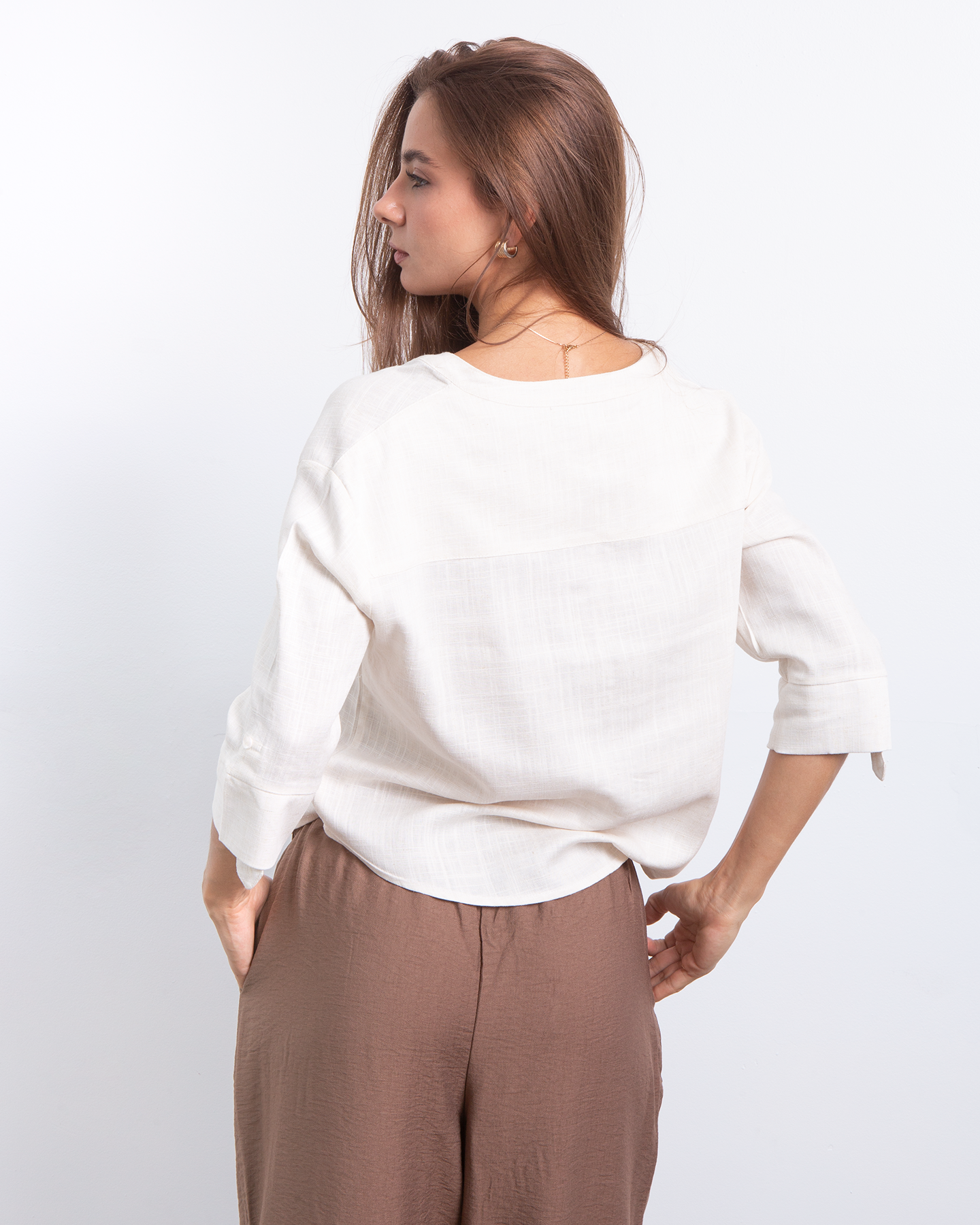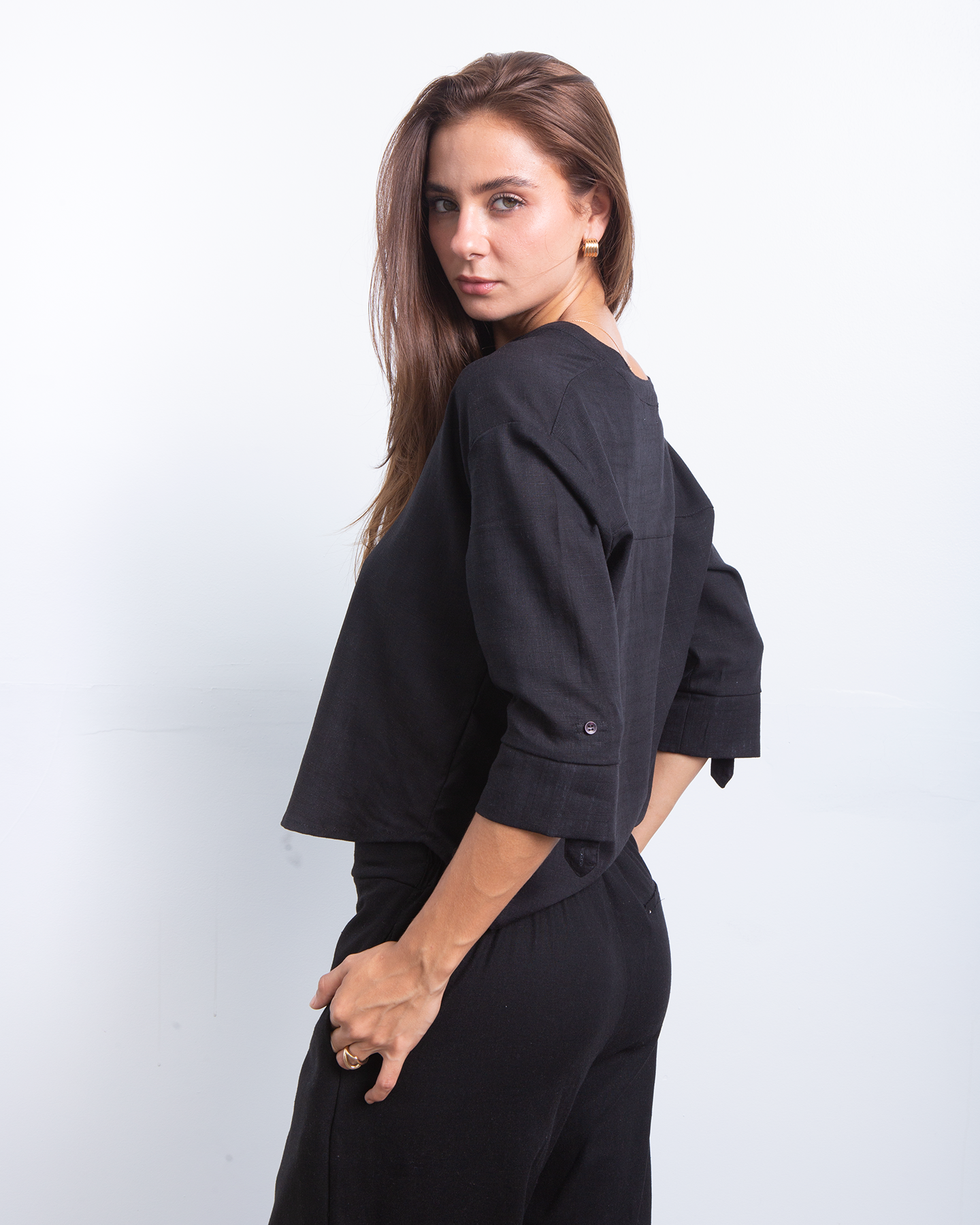Minimalista, fresca y naturalmente elegante. Esta camisa estilo Neru combina la suavidad del rayon con la textura ligera del lino para crear una prenda versátil y atemporal. Su diseño limpio y femenino la convierte en ese básico especial que eleva cualquier look con facilidad. ✨