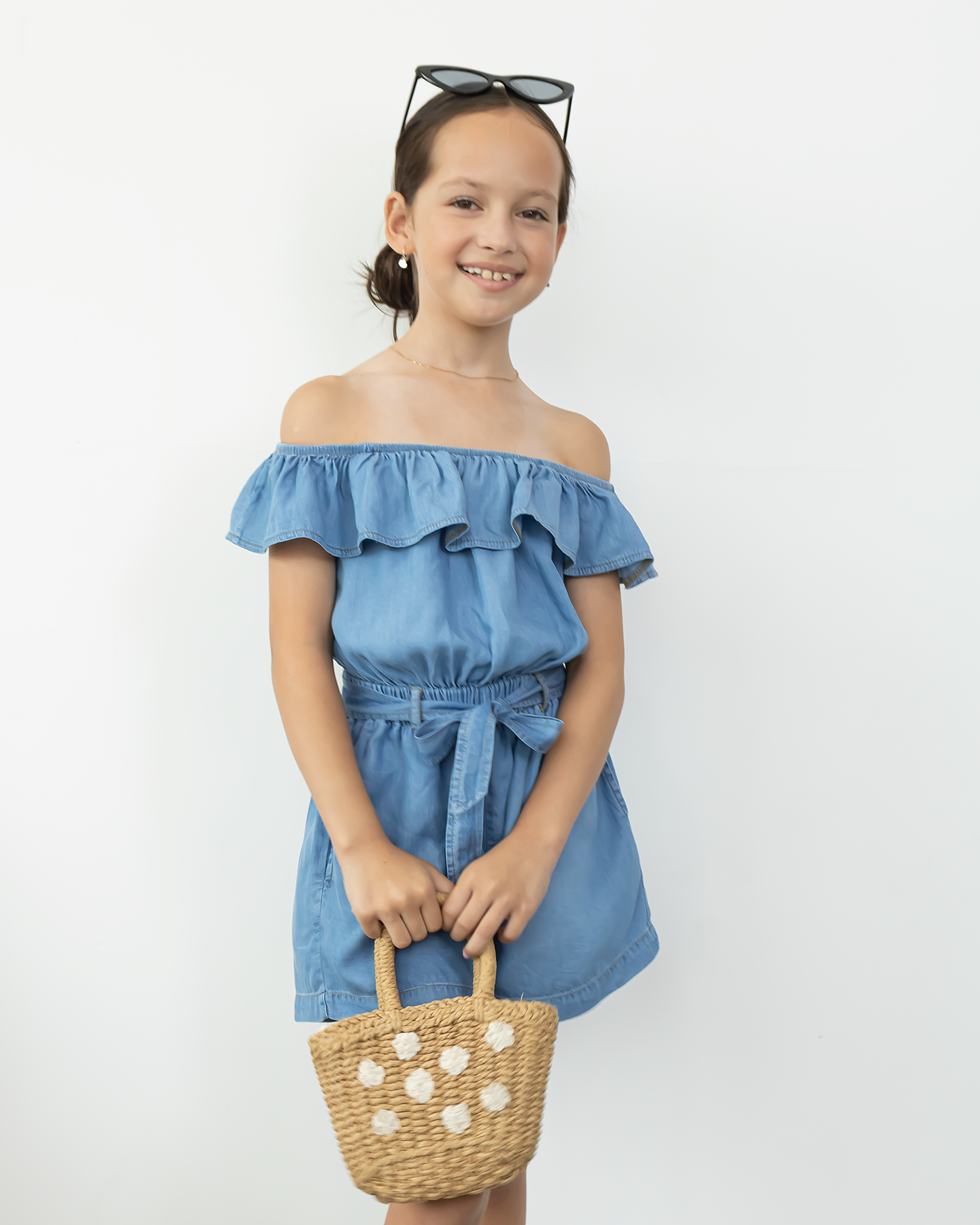 Nuestro Enterizo Maju es una opción divertida y cómoda para los días cálidos. Con estilo de short y un diseño de rumbera, este enterizo de denim presenta un detalle corrugado en la cintura con un cinto