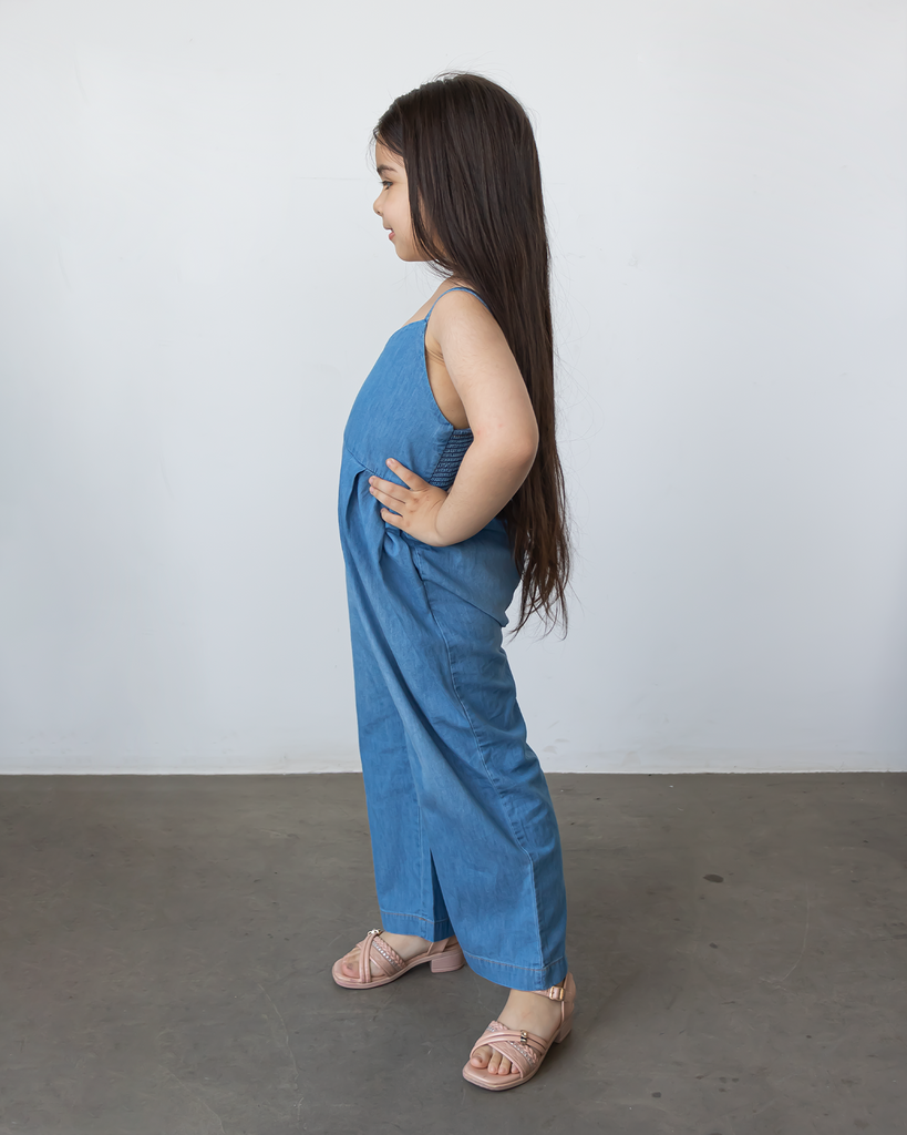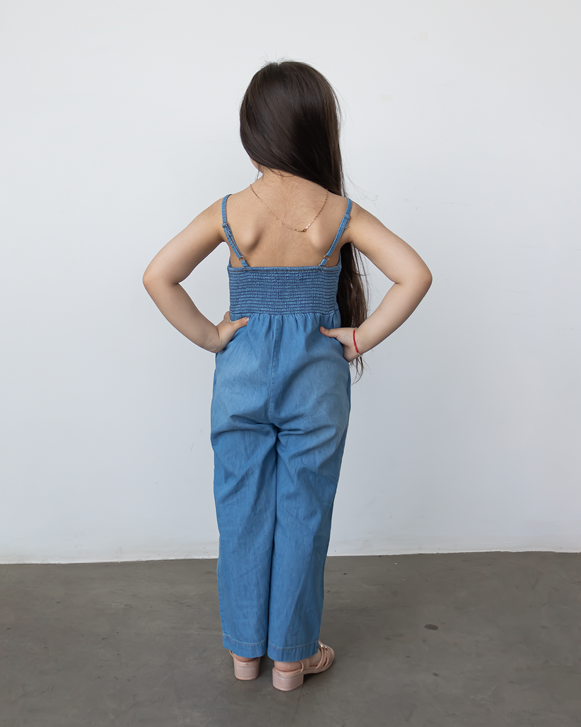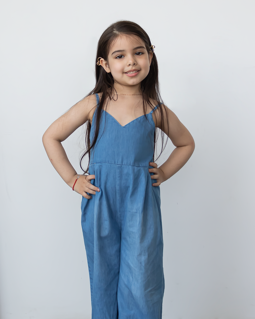 Nuestro Enterizo Rania es una prenda fresca y versátil para las pequeñas aventureras. Con tiras ajustables y pantalones rectos, este enterizo de denim combina estilo y comodidad, ideal para el día a día.