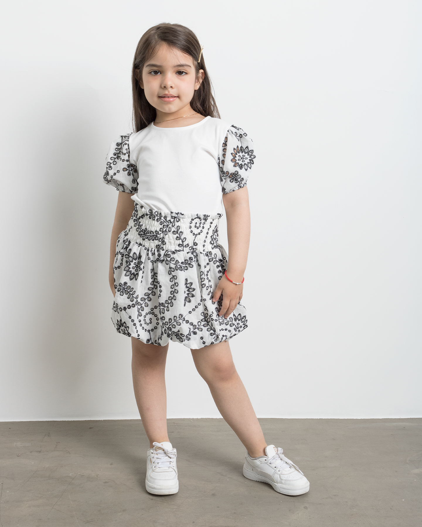 Nuestra Falda Globo es la elección perfecta para el verano. Este falda de broderi cuenta con modelo globo y cintura elasticada, combinando comodidad y estilo.
