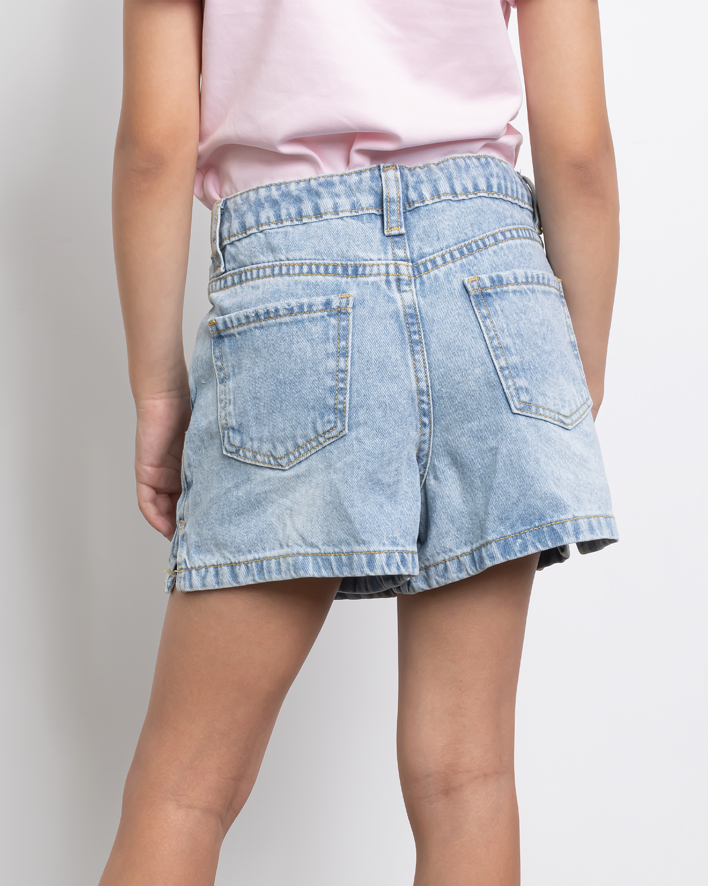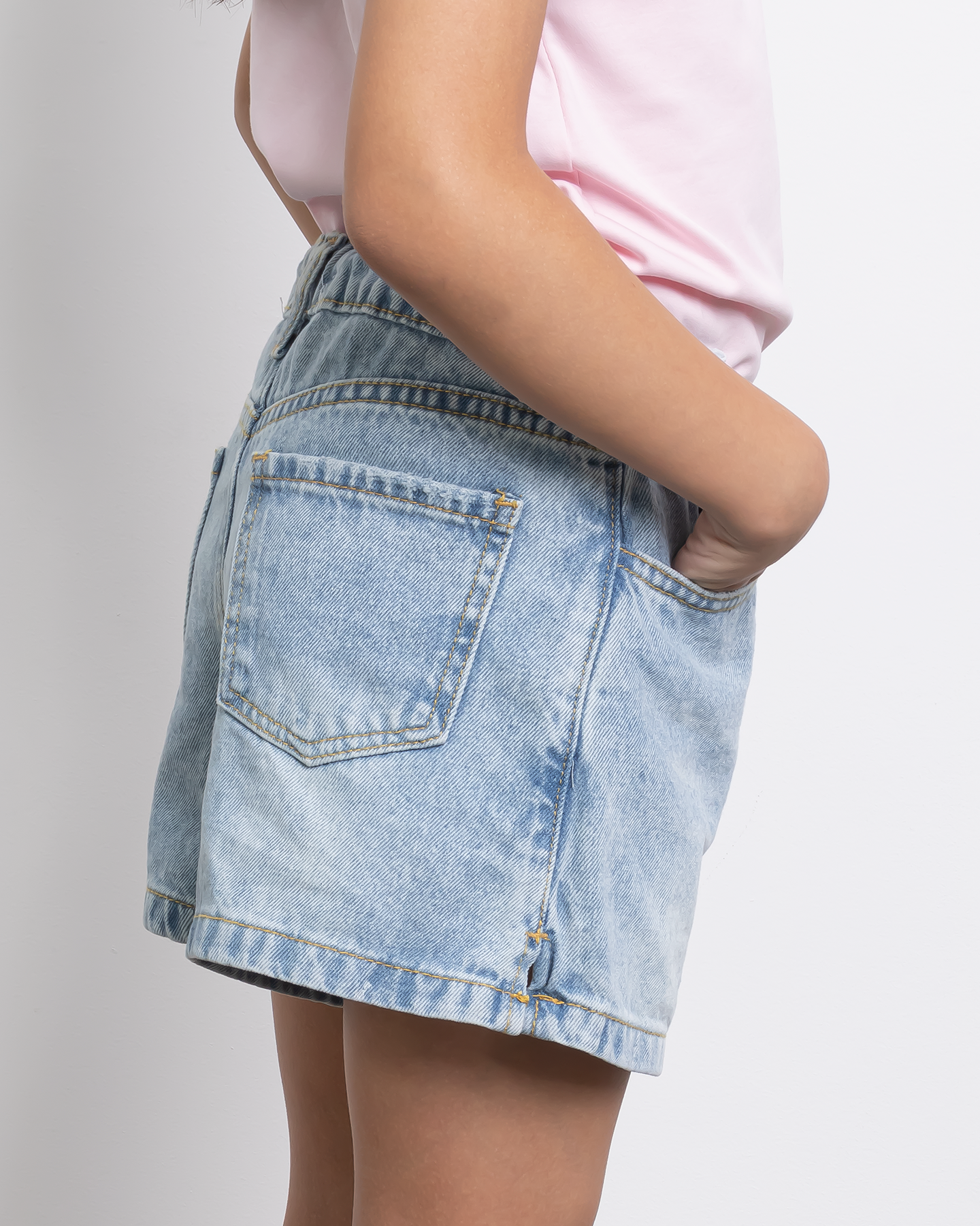 Short Jean con corrugado en la cintura y 5 bolsillos