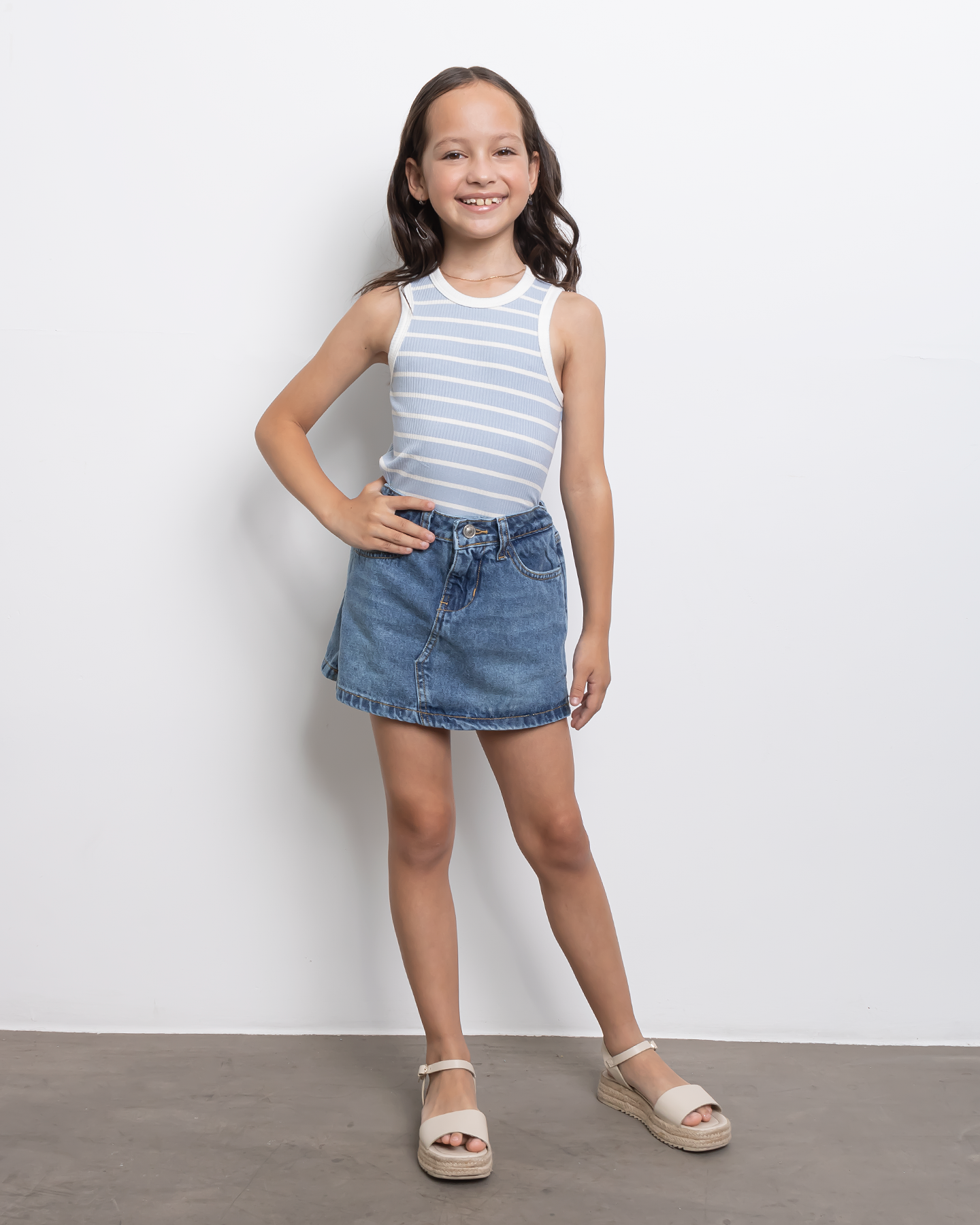 Nuestra Short Falda Jean es la elección perfecta para el verano. Este short de denim cuenta con corrugado en la cintura y 5 bolsillos, combinando comodidad y estilo.
