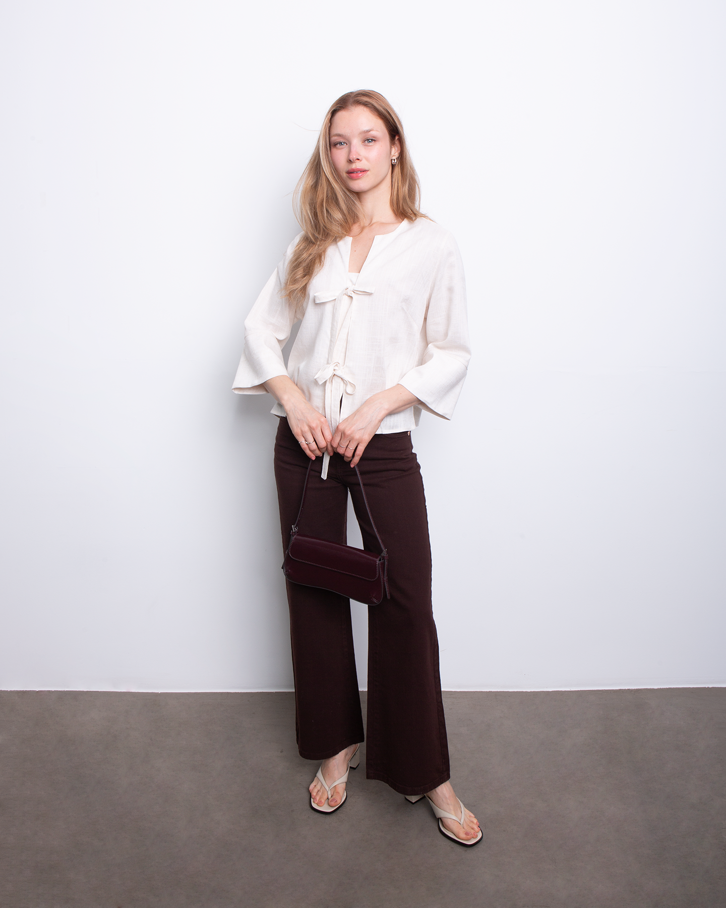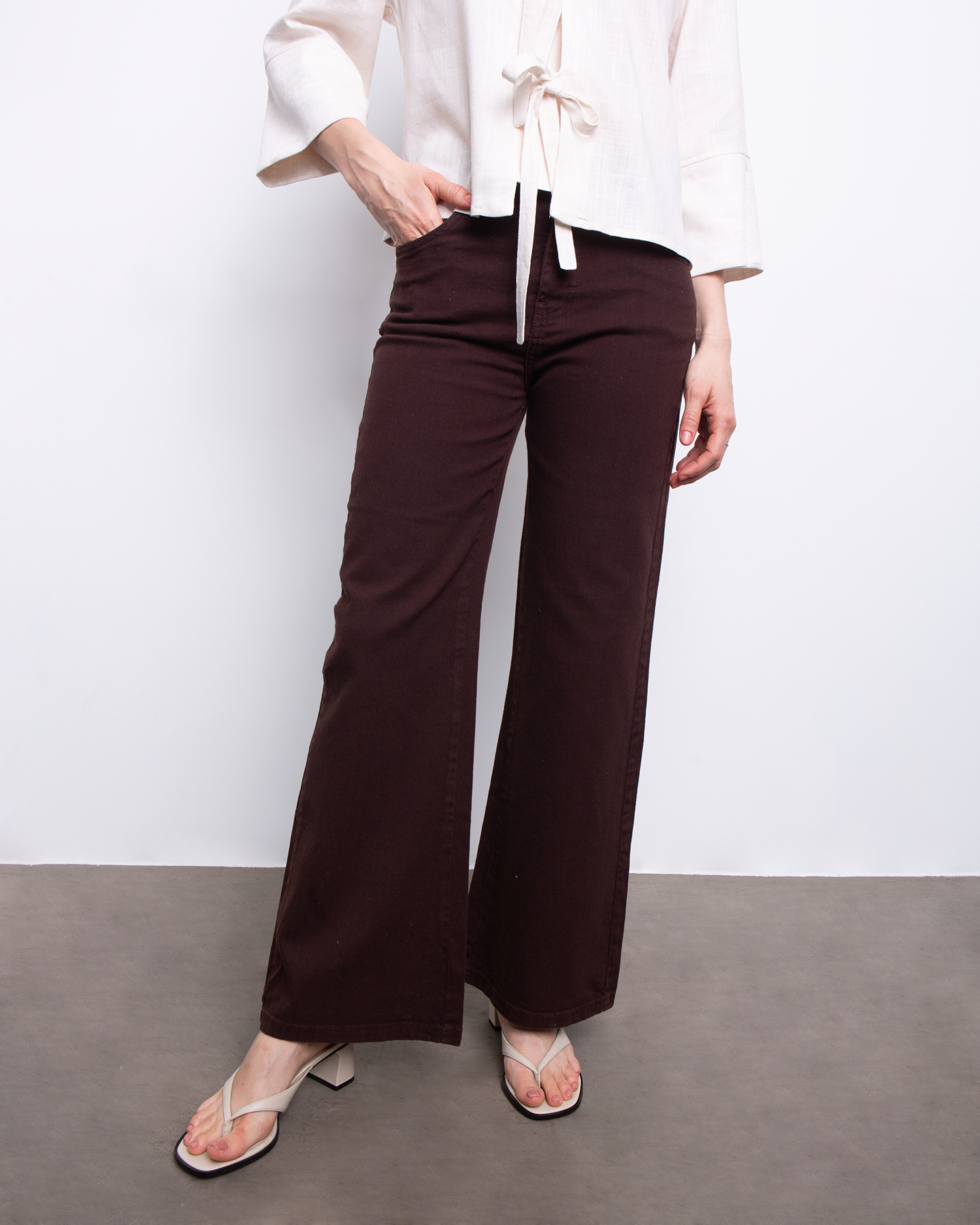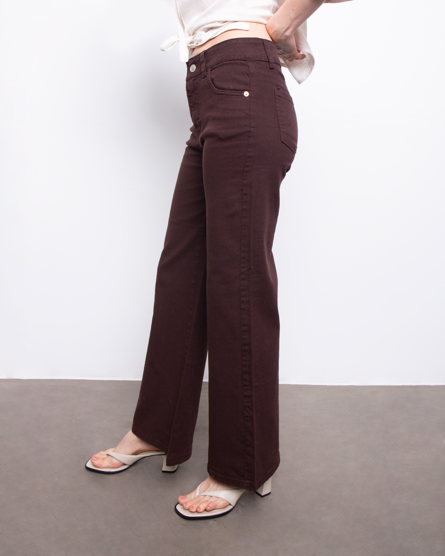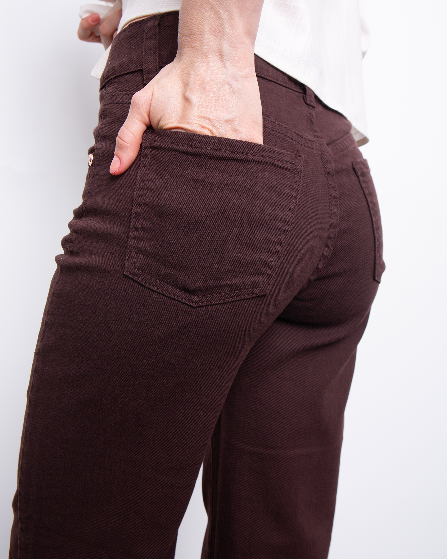 Color y actitud en cada paso. Este jean palazo en tono marrón intenso es una apuesta segura para elevar tu look diario con un toque moderno y sofisticado. Su silueta amplia y de tiro alto estiliza y aporta movimiento, sin dejar de lado la comodidad.