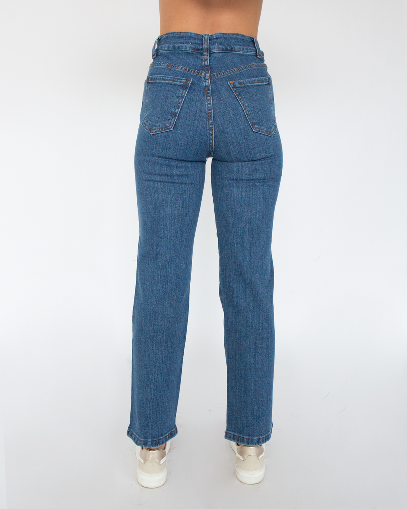Nuestro denim recto es un básico que tienes que tener en tu closet Tiene el fit perfecto para que te sientas cómoda! Elaborado con un tejido resistente y de alta calidad, este jean palazo es ideal para aquellos/as que buscan un look moderno sin renunciar a la practicidad.
