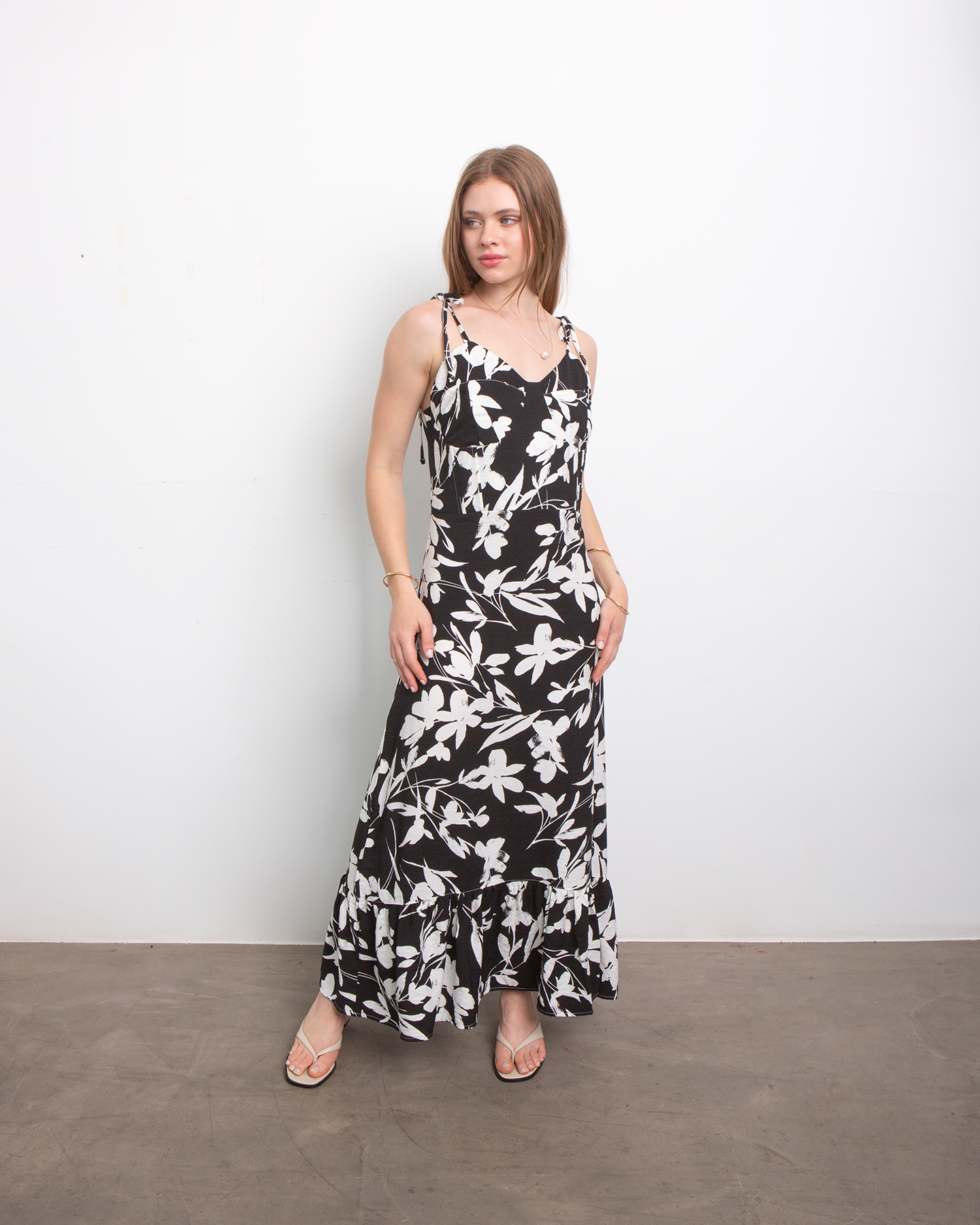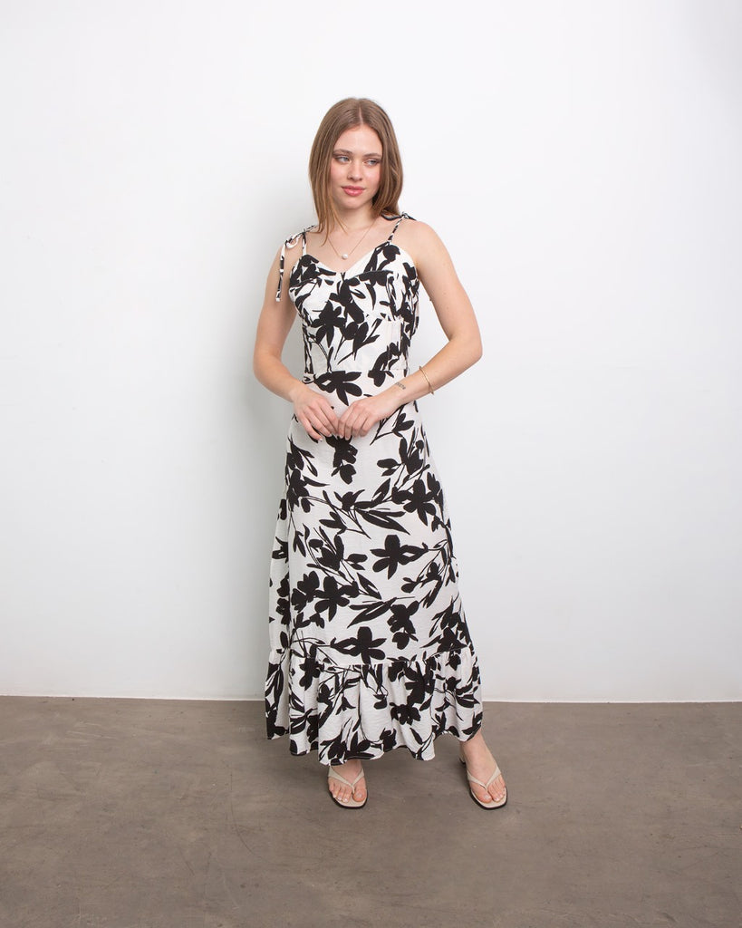El vestido “Tana” es ese maxi ideal para los días de sol o escapadas de fin de semana. Con breteles delgados que se ajustan con lazo y un escote suave tipo “V”, este vestido combina comodidad con un estilo femenino y relajado. El vuelo sutil en el ruedo le da movimiento y un aire bohemio perfecto para el verano.