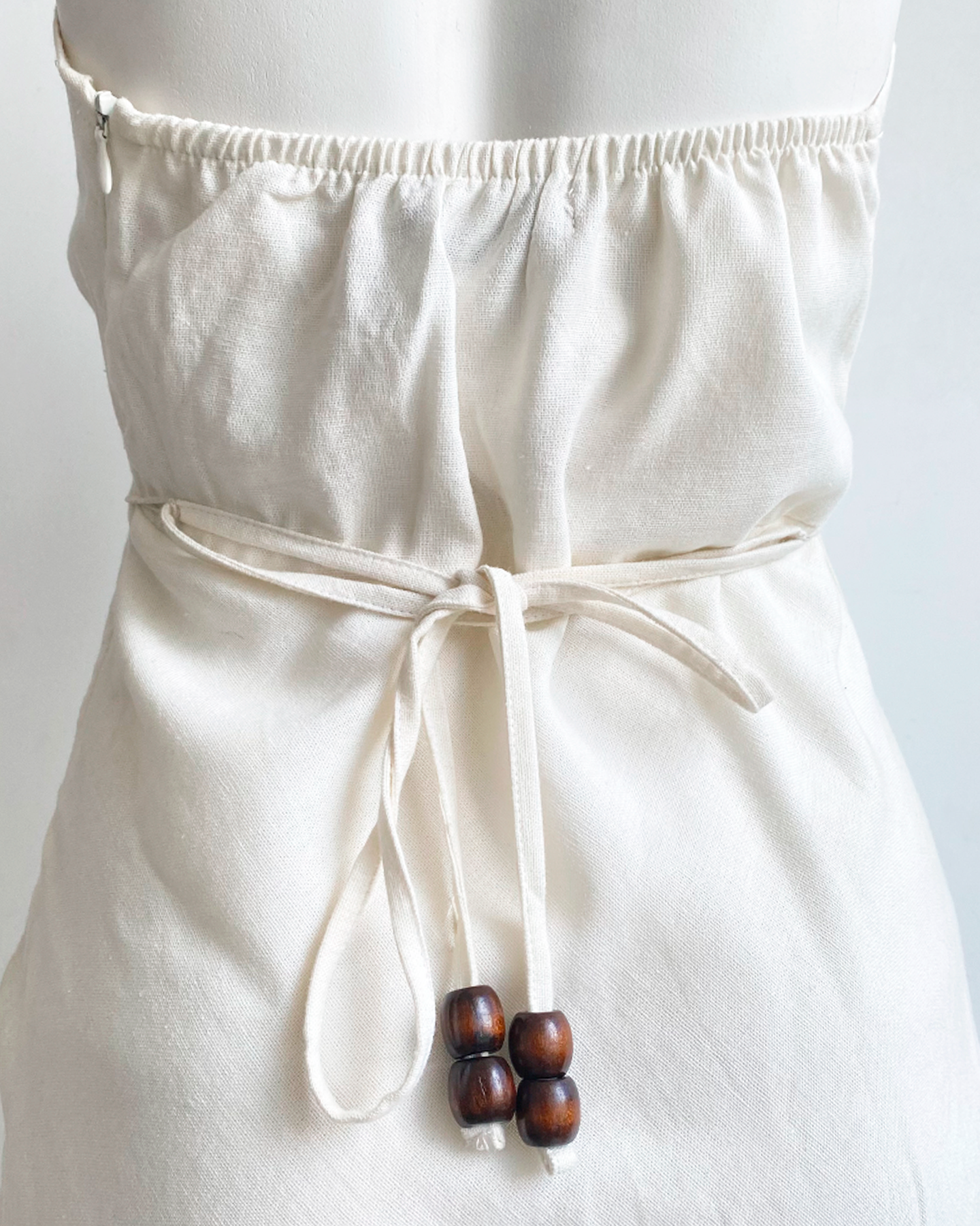 Suavemente ceñido en la cintura y con una caída liviana que acompaña el movimiento, este vestido resalta la figura sin marcar de más. El lino aporta una textura natural y fresca, ideal para climas cálidos y eventos de día o de noche.