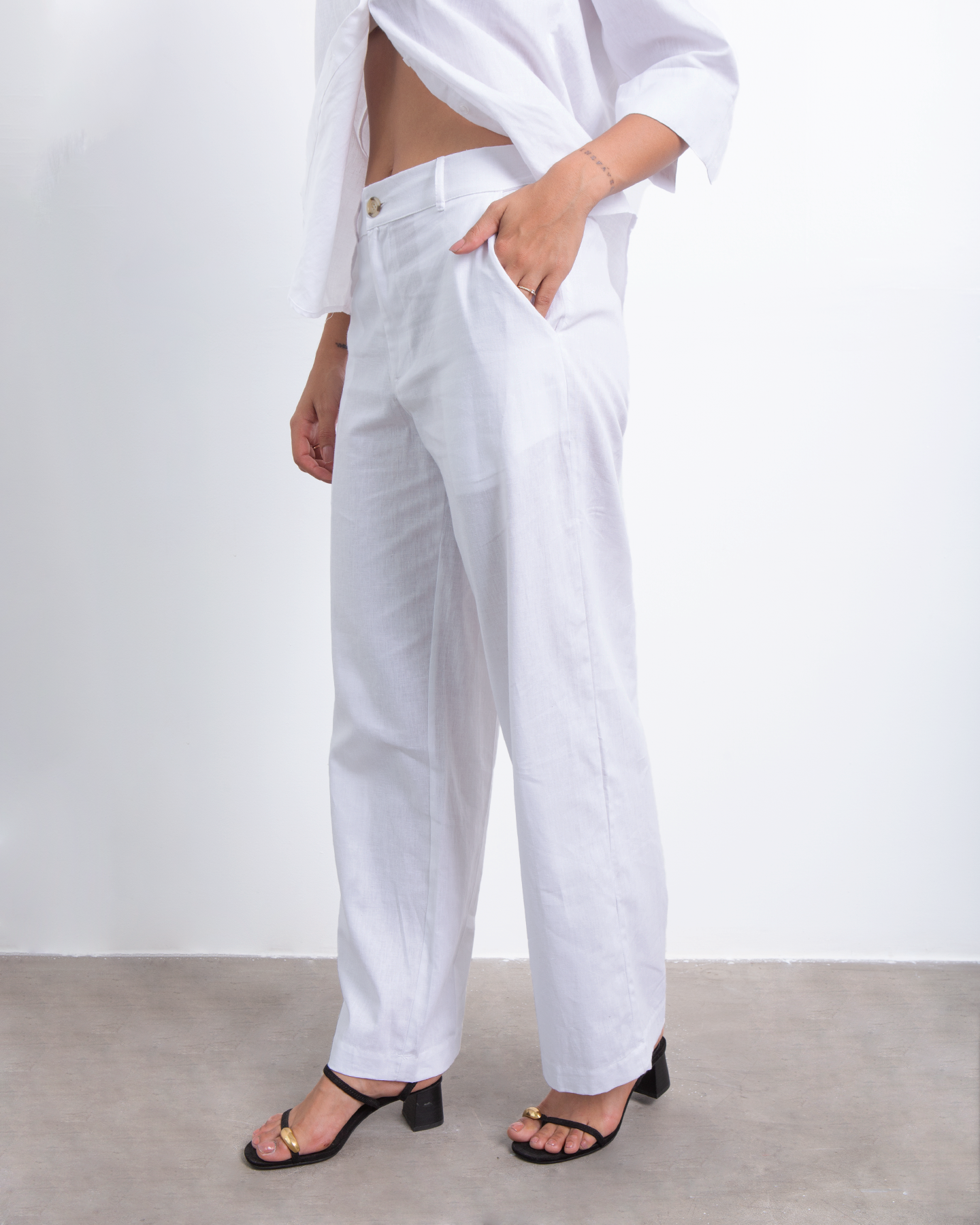 • Tela de lino fresca y con caída suave 🌿