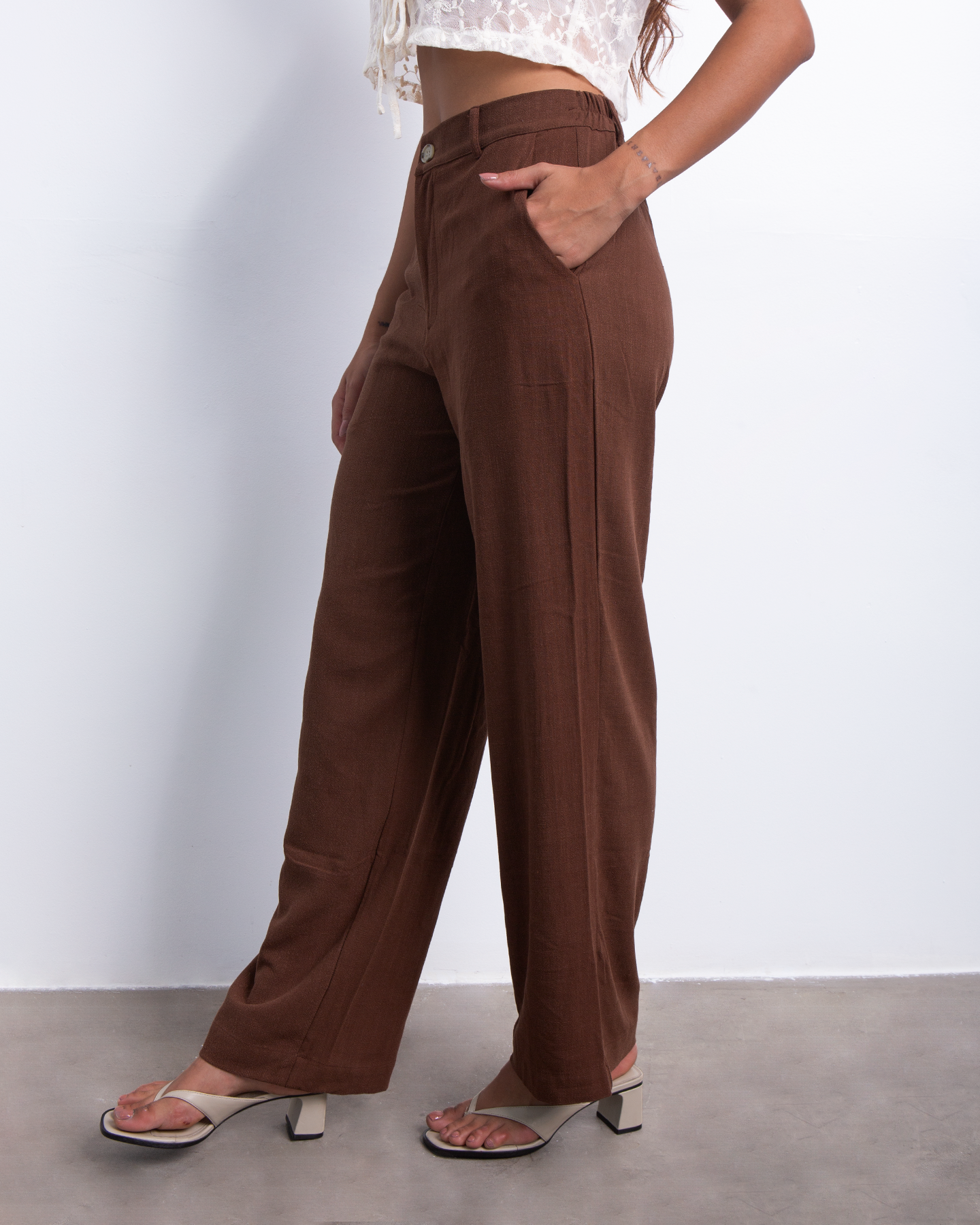 El pantalón Irene combina el aire natural del lino con un diseño moderno y favorecedor. Su tono marrón cálido es perfecto para crear looks sofisticados sin esfuerzo, mientras que su corte recto estiliza la silueta con un fit cómodo pero estructurado.
