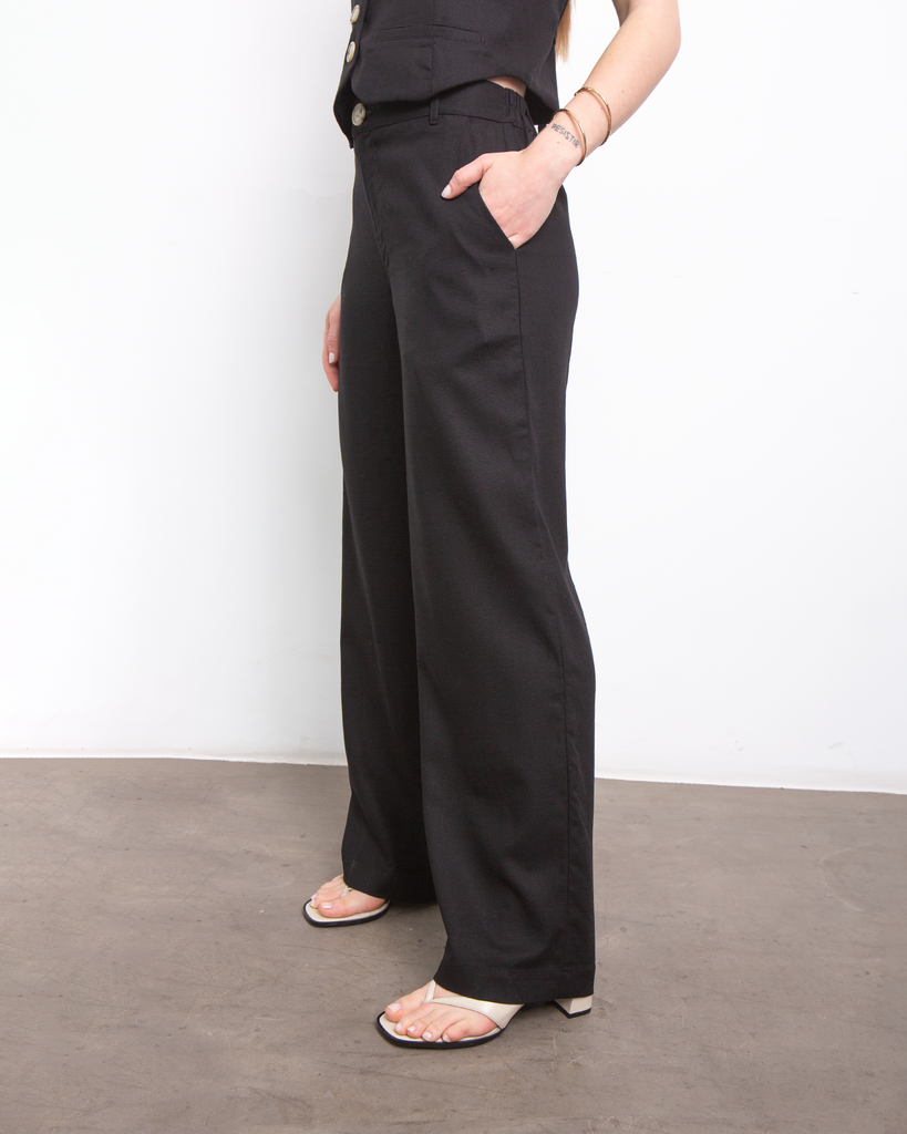 Tiene un corte amplio tipo palazzo, que alarga visualmente las piernas y aporta movimiento en cada paso. La cintura media-alta realza la figura sin ajustar de más. Ideal para combinar con camisas, tops o blusas estructuradas para lograr un balance perfecto.
