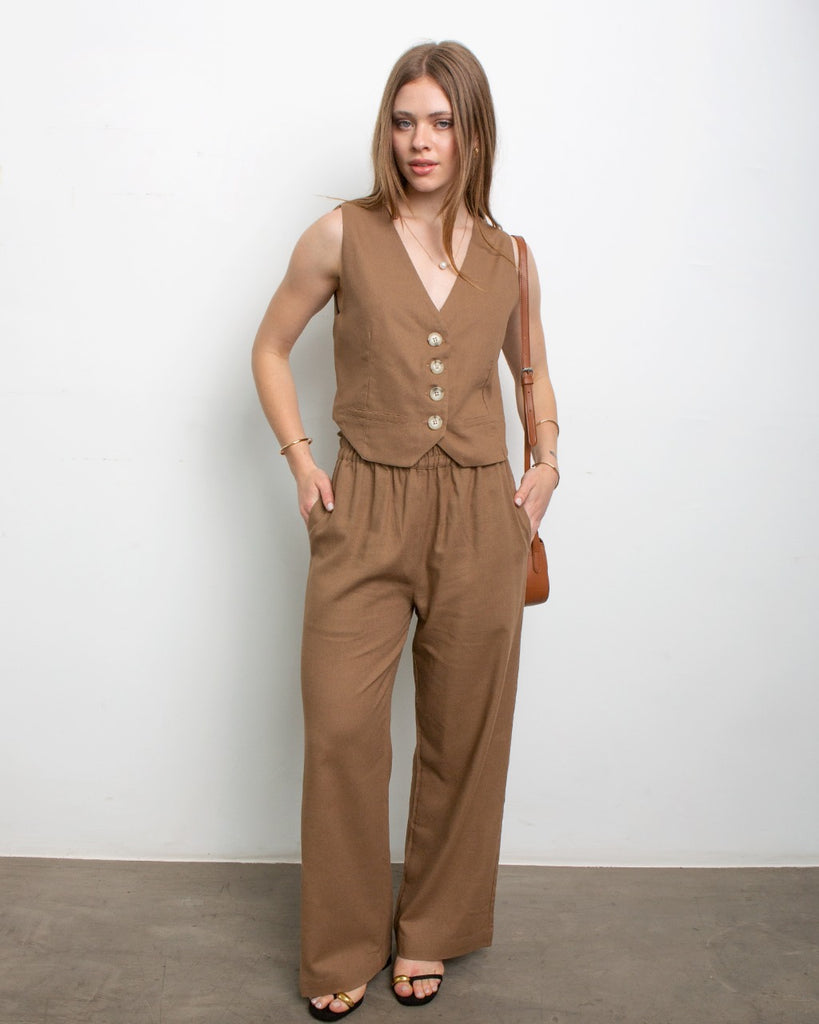 stilo relajado con un toque sofisticado. El Pant Palazzo Lino P es esa prenda liviana y fluida que estiliza sin esfuerzo, perfecta para climas cálidos o para elevar tu look del día a día con elegancia natural.
