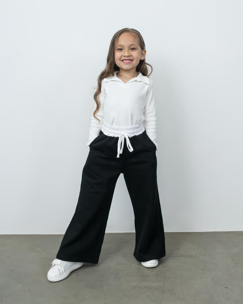 Nuestro Pantalón Adriana es ideal para un look deportivo y cómodo. Confeccionado en french terry, presenta un corte ancho y es perfecto para las más pequeñas que buscan libertad de movimiento en su día a día.
