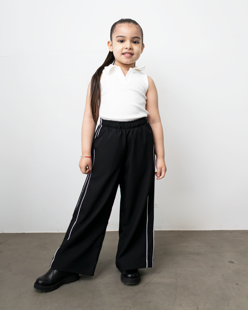 Nuestro Pantalón Sastre Basika es perfecto para ocasiones especiales y un look elegante. Diseñado para niñas, cuenta con dos lineas laterales que aportan un toque sofisticado y divertido.