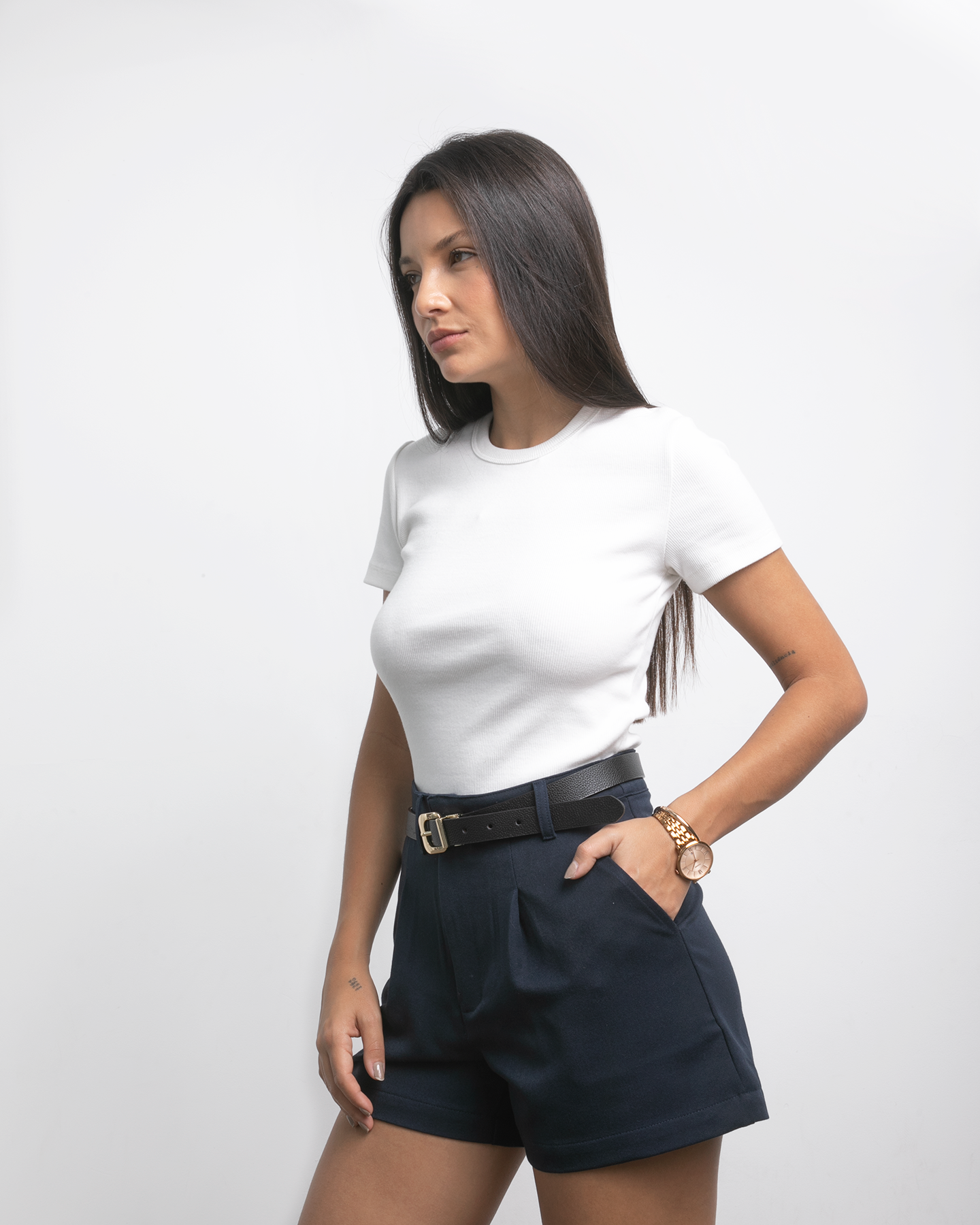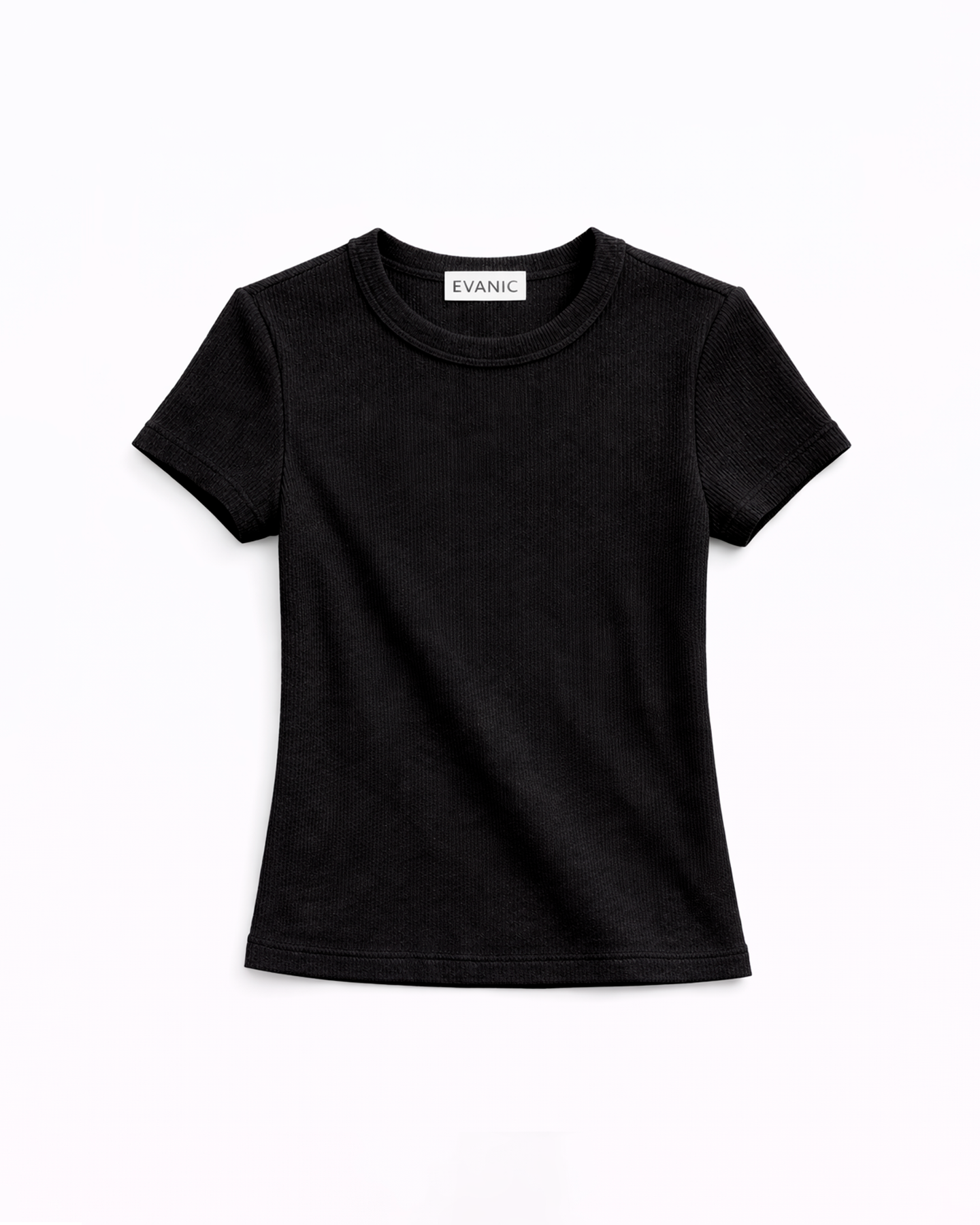 Este polo básico de rib es de esos que se sienten ricos al tacto y se ven aún mejor puestos. Tiene un fit ceñido y cómodo que acompaña el cuerpo sin apretar, con cuello redondo y manga corta para un look limpio y moderno. Ideal para armar outfits del día a día: desde un plan casual con zapatillas hasta un look más pulido con blazer y accesorios.