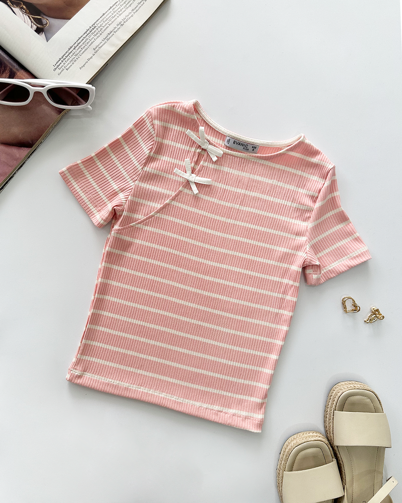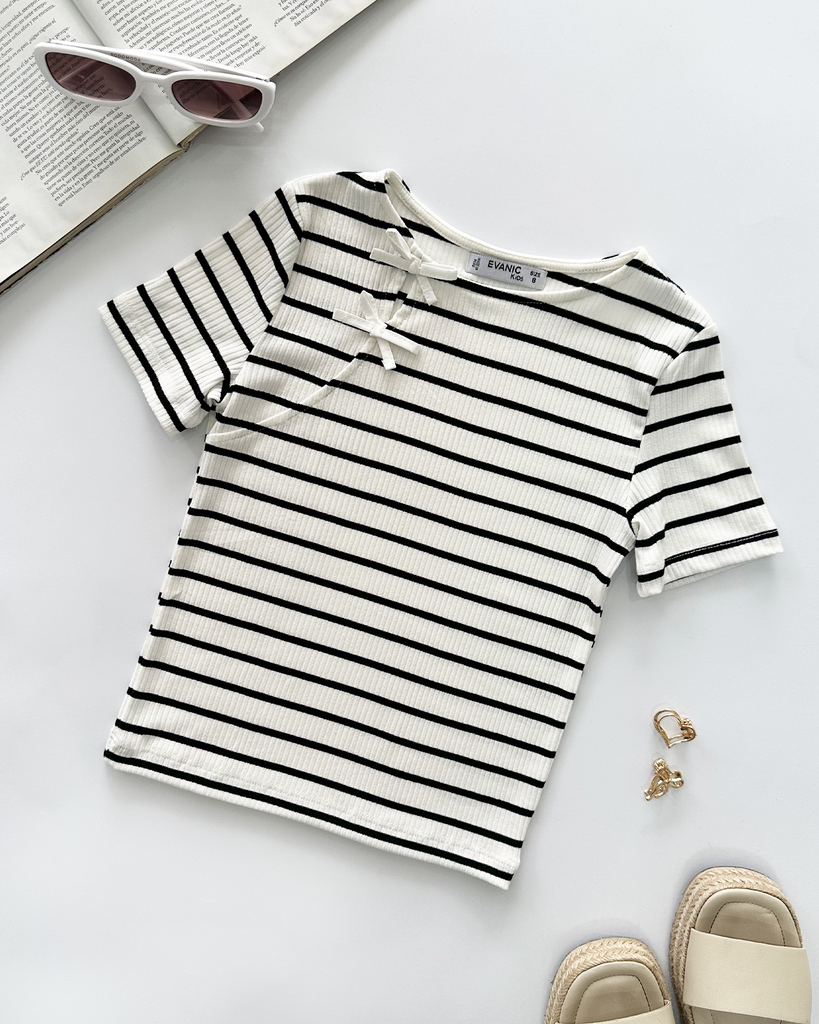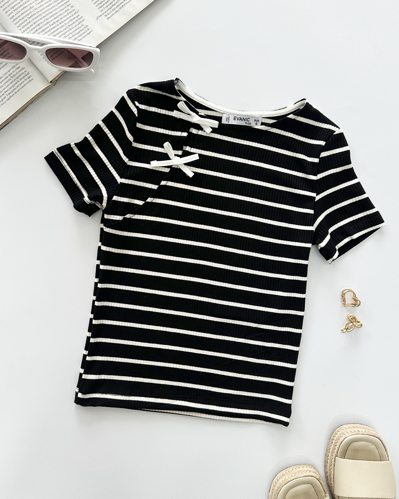 Polo de tipo de tela algodón, con manga corta y lazos frontales.