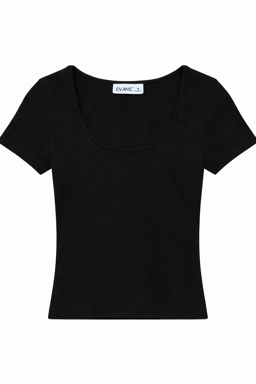 Este polo es la definición de versatilidad: su silueta ajustada y escote redondo amplio lo hacen perfecto para lucir el cuello y sumar equilibrio a cualquier look. Se adapta suave al cuerpo, realzando tu figura sin apretar, y su textura acanalada le da un aire moderno y atemporal.