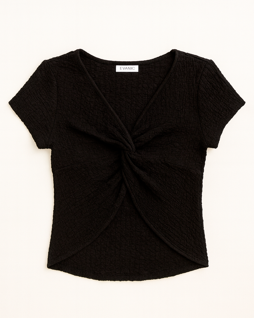 El top “Pia” combina un fit favorecedor con un diseño central de nudo que resalta la silueta. Su tela texturizada le da un aire relajado pero con estilo, ideal para elevar tus looks sin esfuerzo. Perfecto para salir, viajar o darle un toque distinto a tus básicos de siempre.