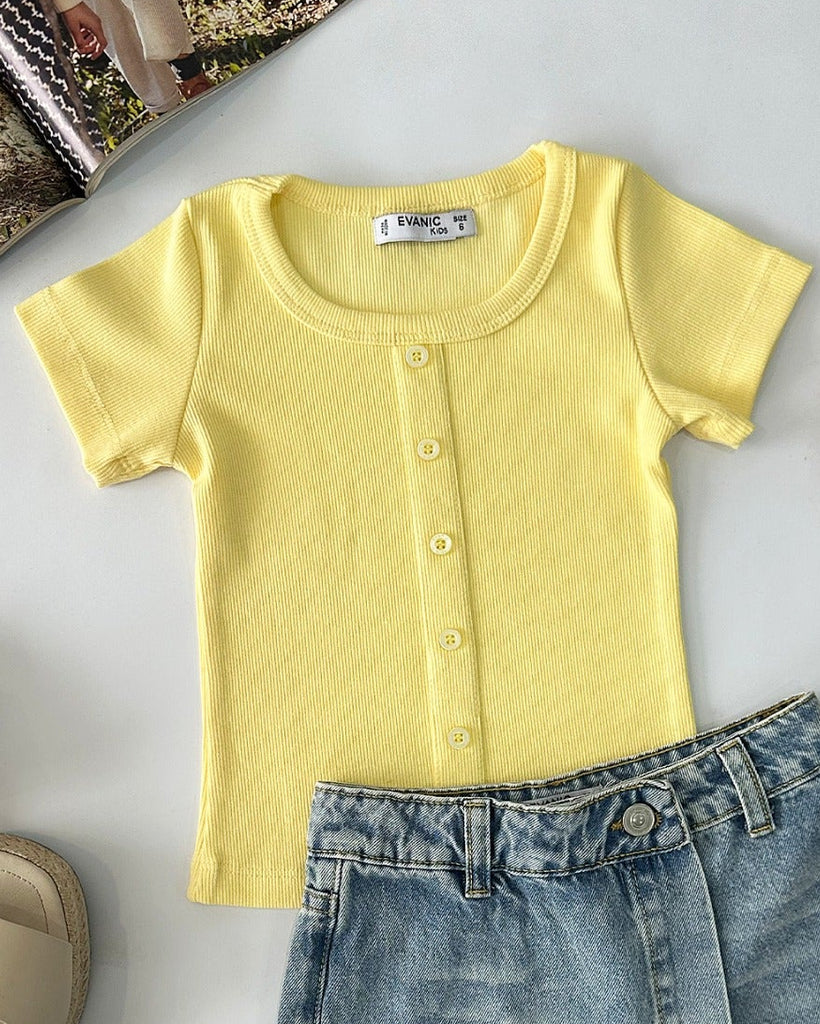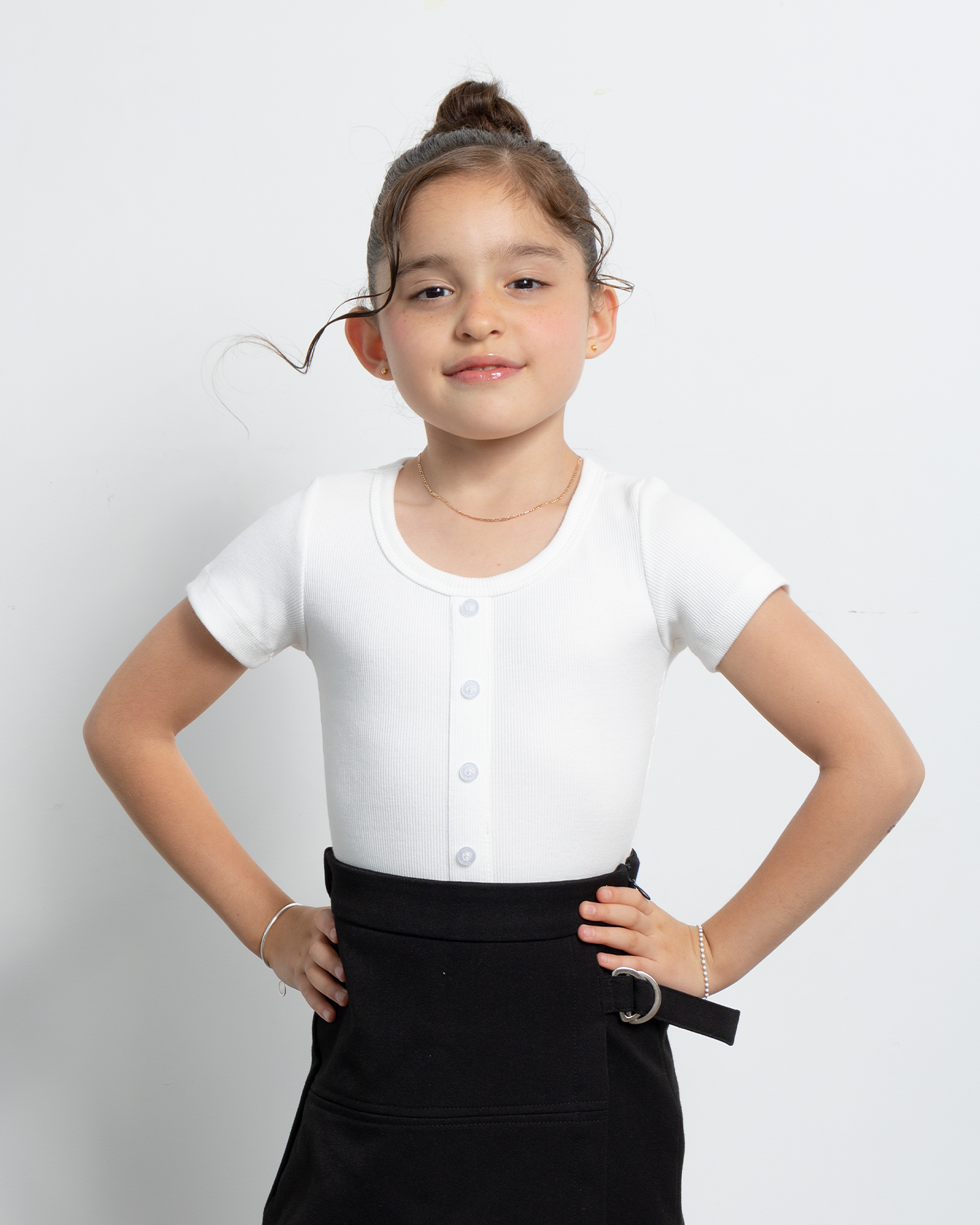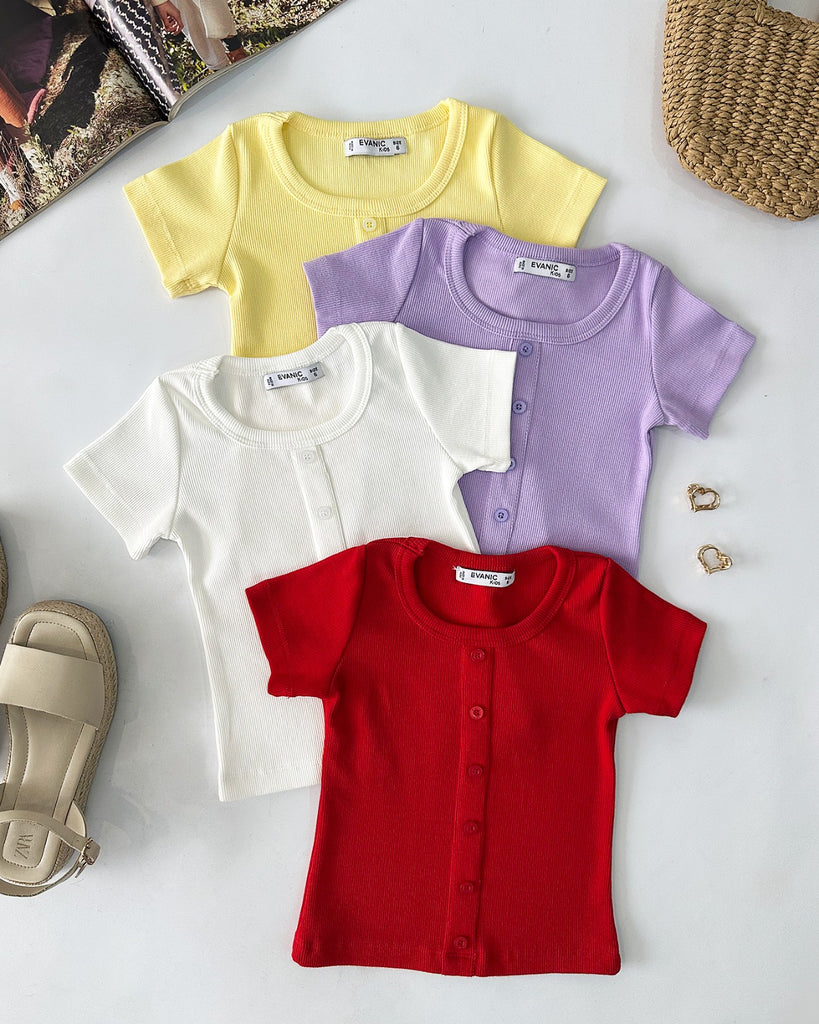 Nuestro Polo Zoe es una prenda versátil y cómoda, ideal para las pequeñas. Su diseño de manga corta y cuello redondo, combinado con botones frontales, añade un toque divertido y práctico.