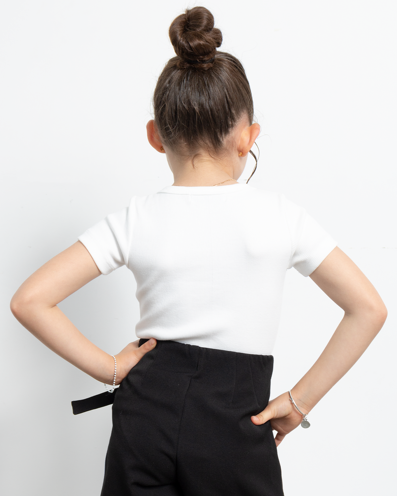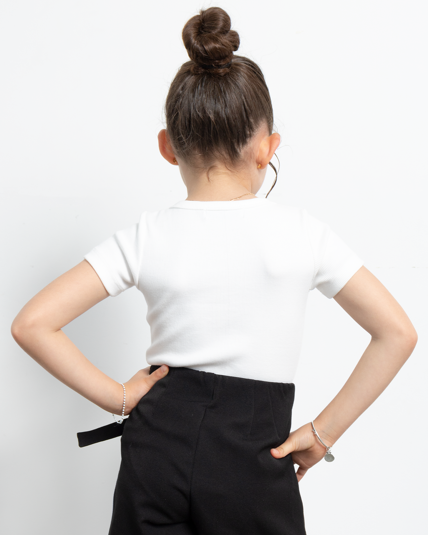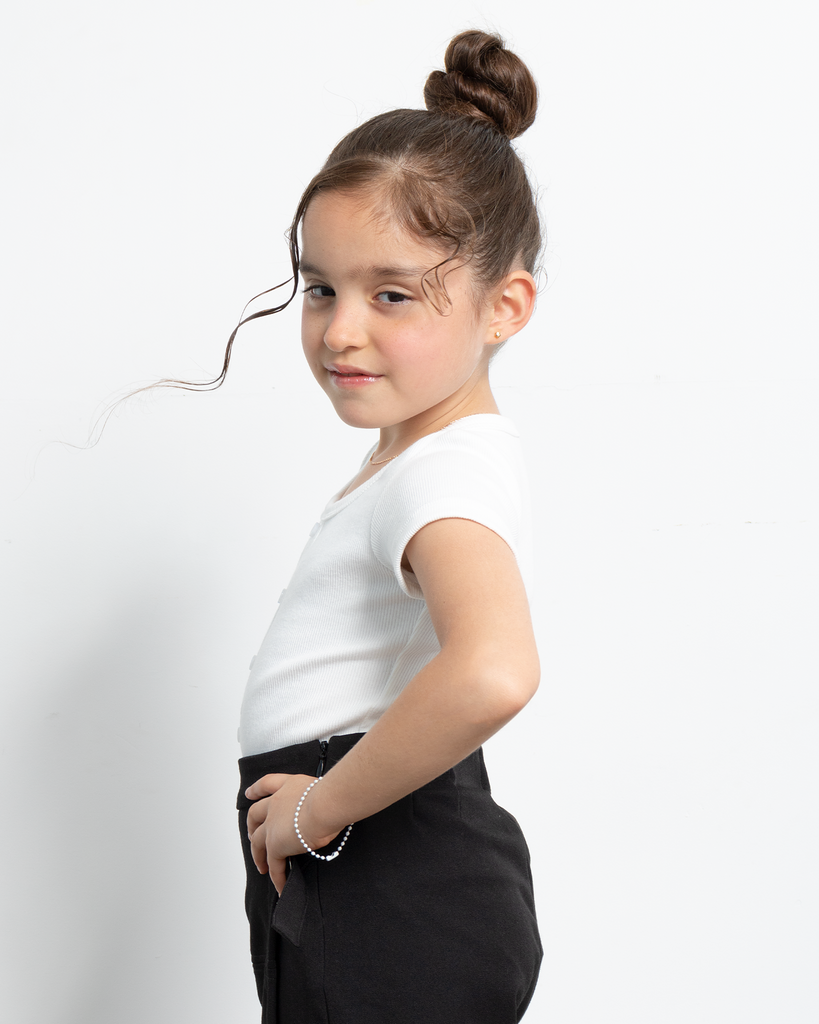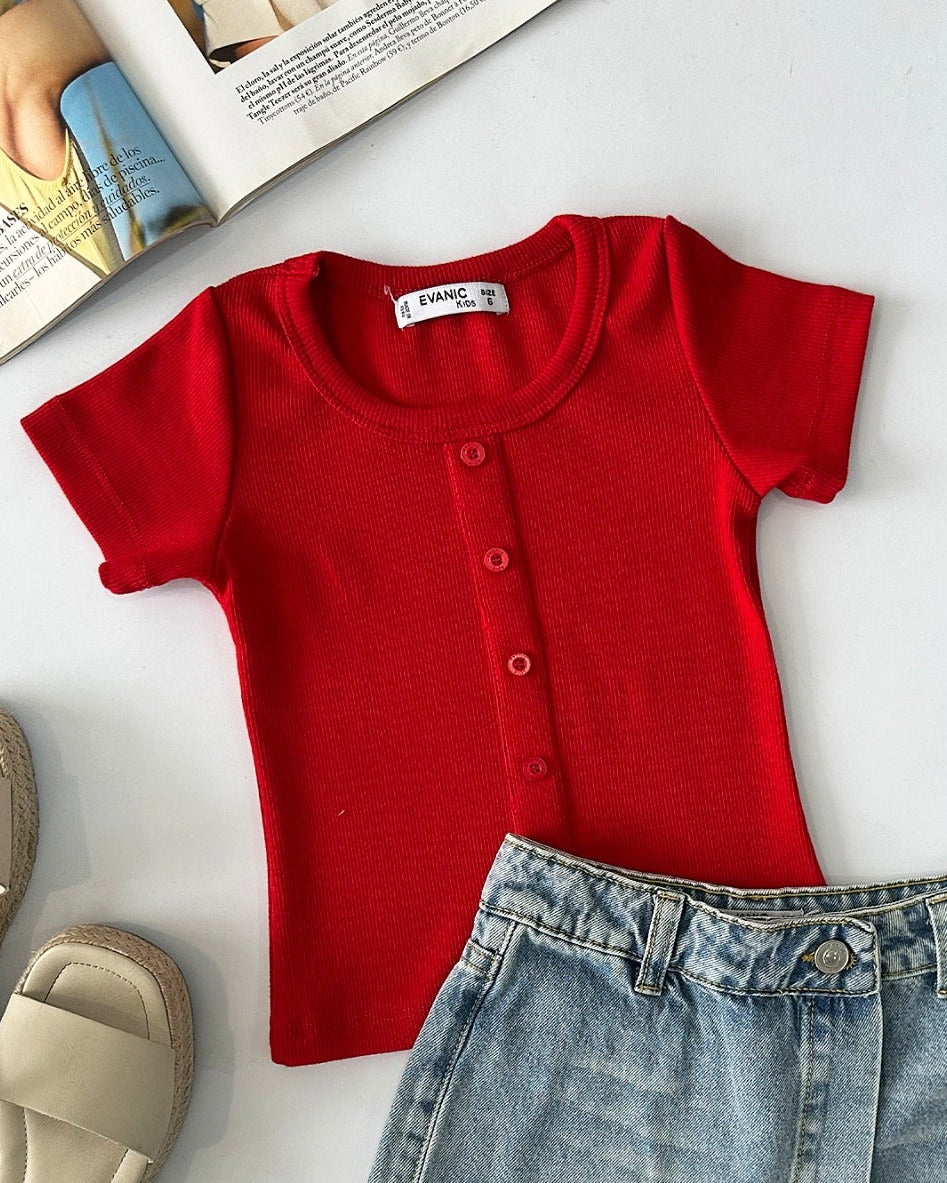 Nuestro Polo Zoe es una prenda versátil y cómoda, ideal para las pequeñas. Su diseño de manga corta y cuello redondo, combinado con botones frontales, añade un toque divertido y práctico.