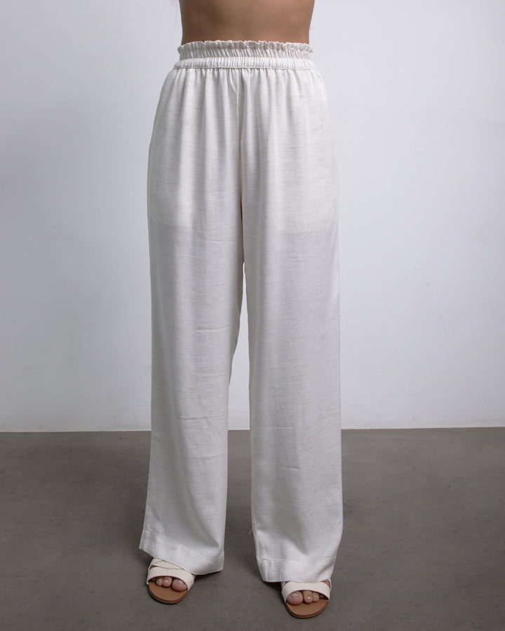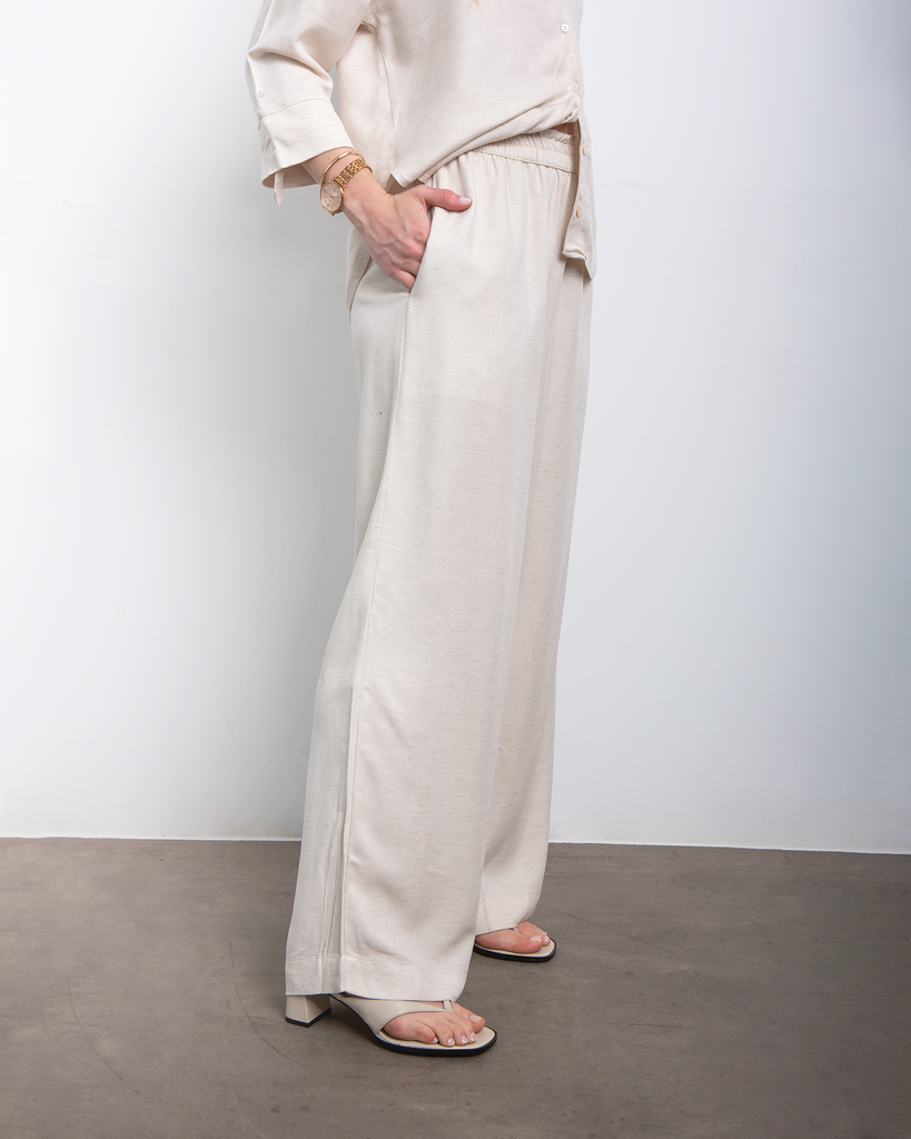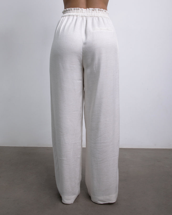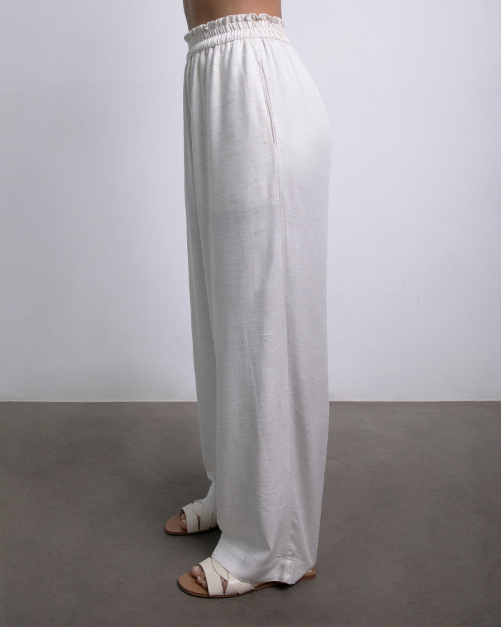 Pantalón con pretina elástica, bolsillos y pierna fluida