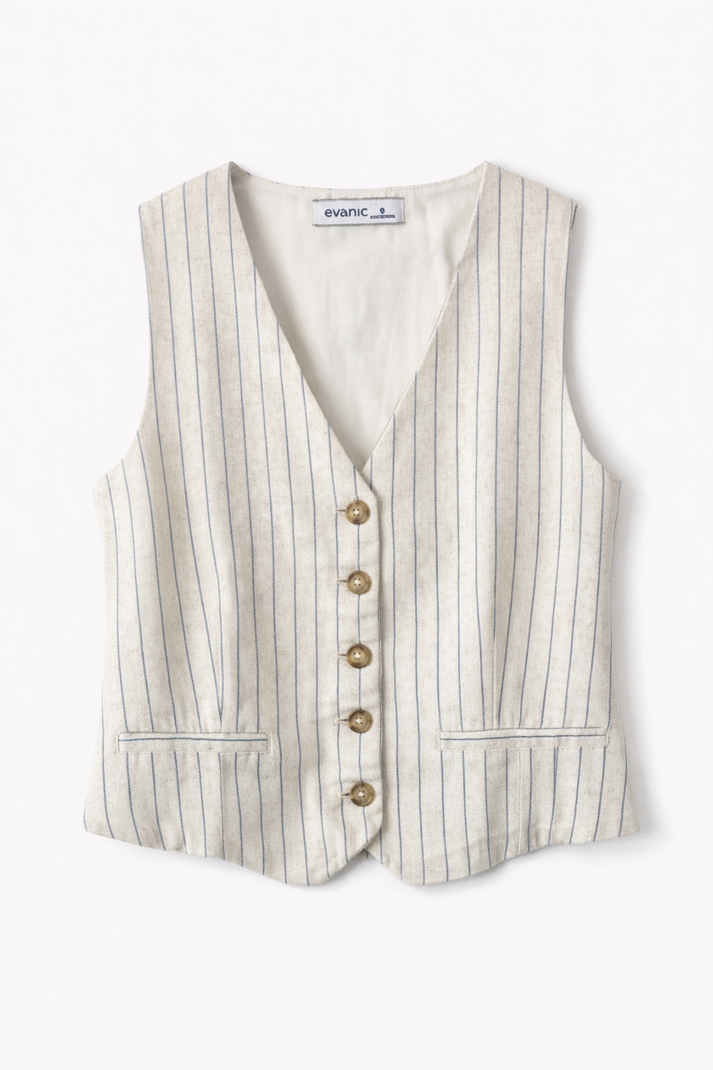 Chaleco con escote en V, botones tipo carey y pinzas que definen