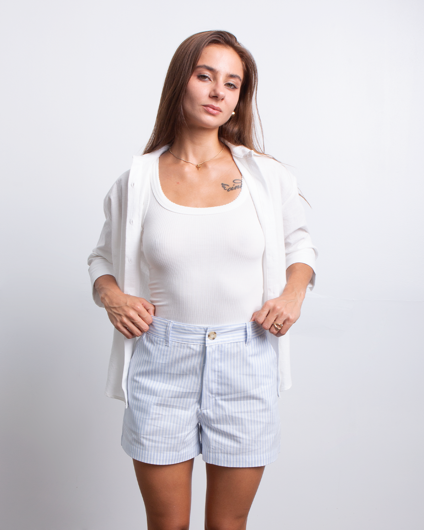 Ligero, cómodo y con estilo natural. El short Melia de rayas beige es esa prenda que se siente tan bien como se ve. Tiene un diseño relajado pero pulido, ideal para climas cálidos o para armar looks frescos con un toque sofisticado.