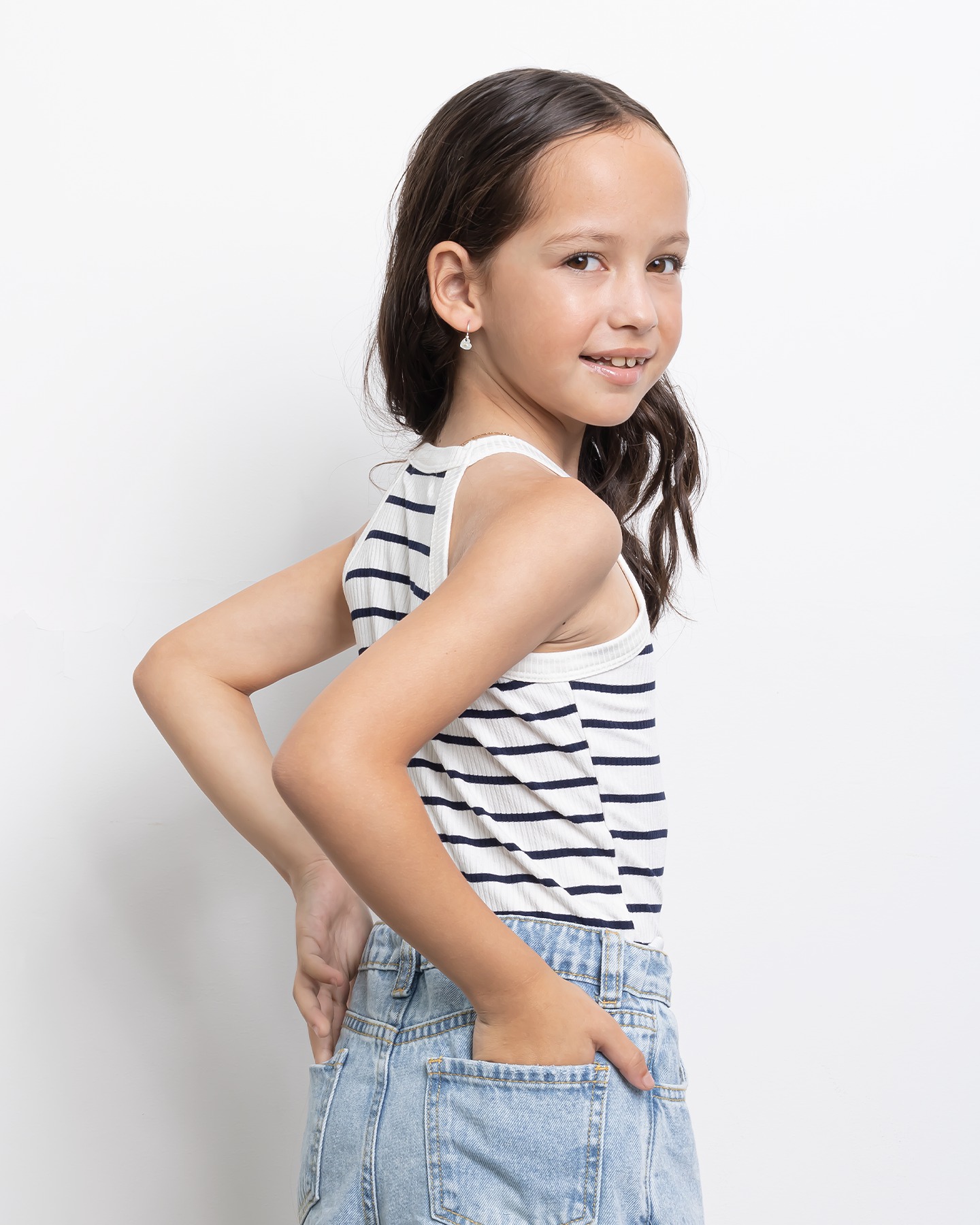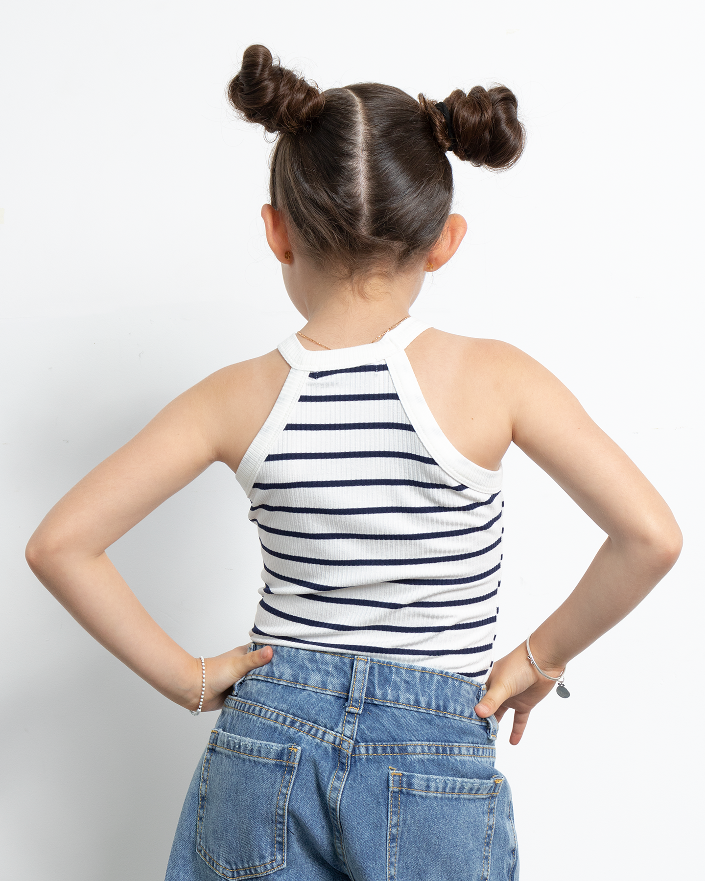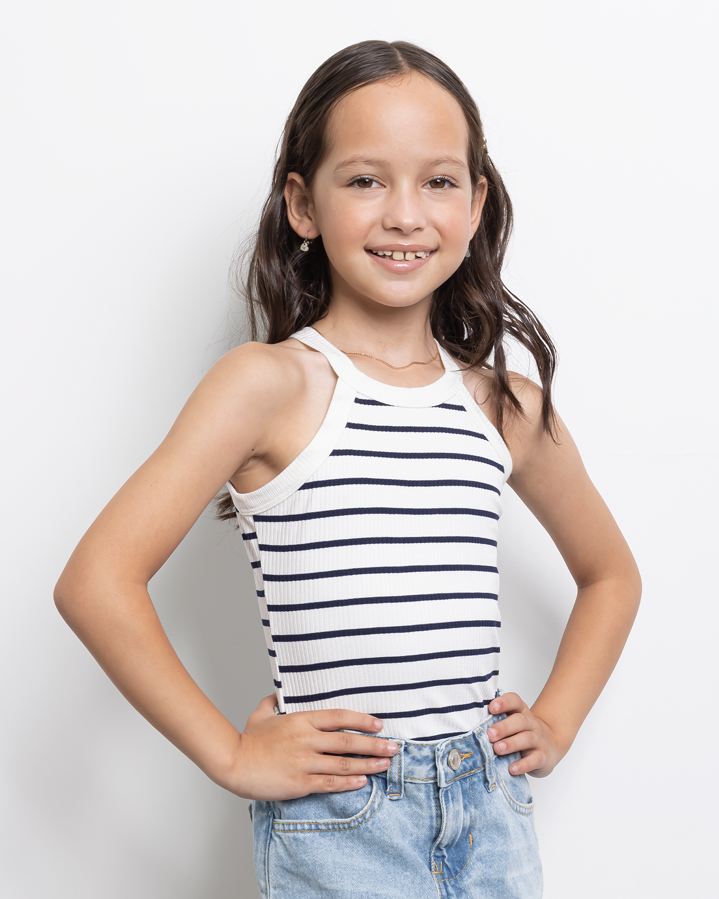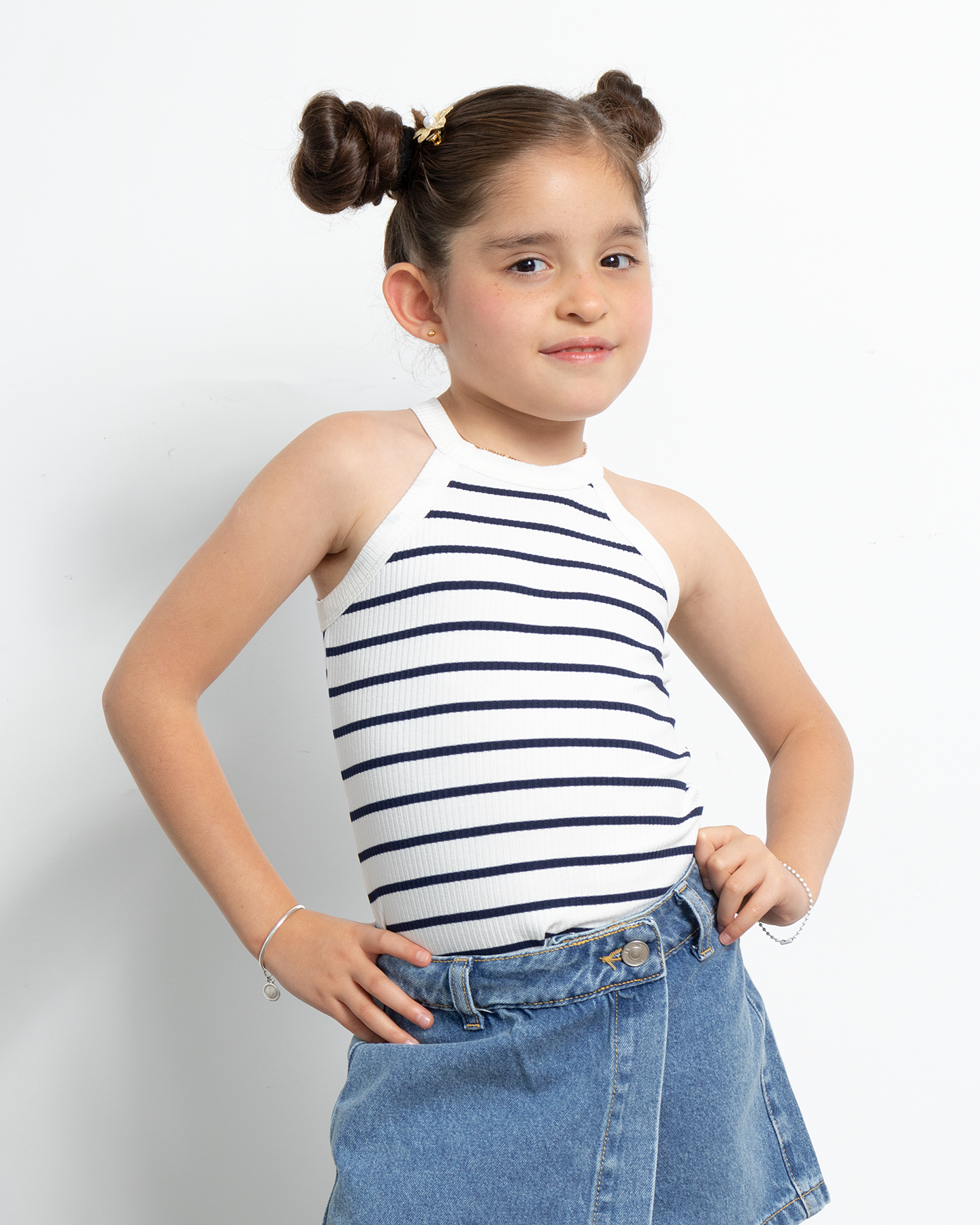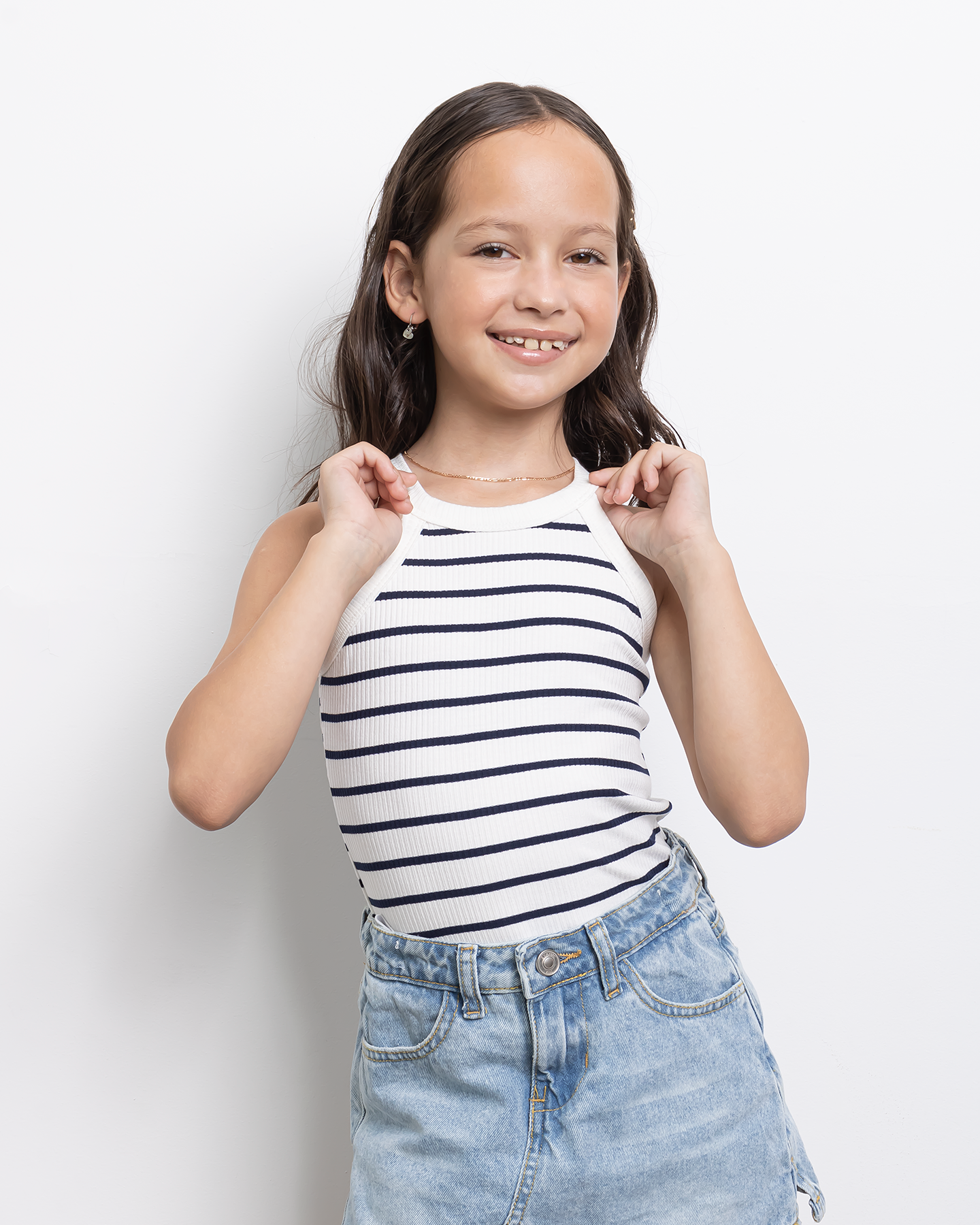 Nuestro Top Eva de rib es una opción elegante y fresca para aquellos días en los que deseas un estilo relajado pero atractivo. Este top sin mangas está confeccionado con un tejido de rib que agrega una dimensión visual única y una textura suave al tacto.