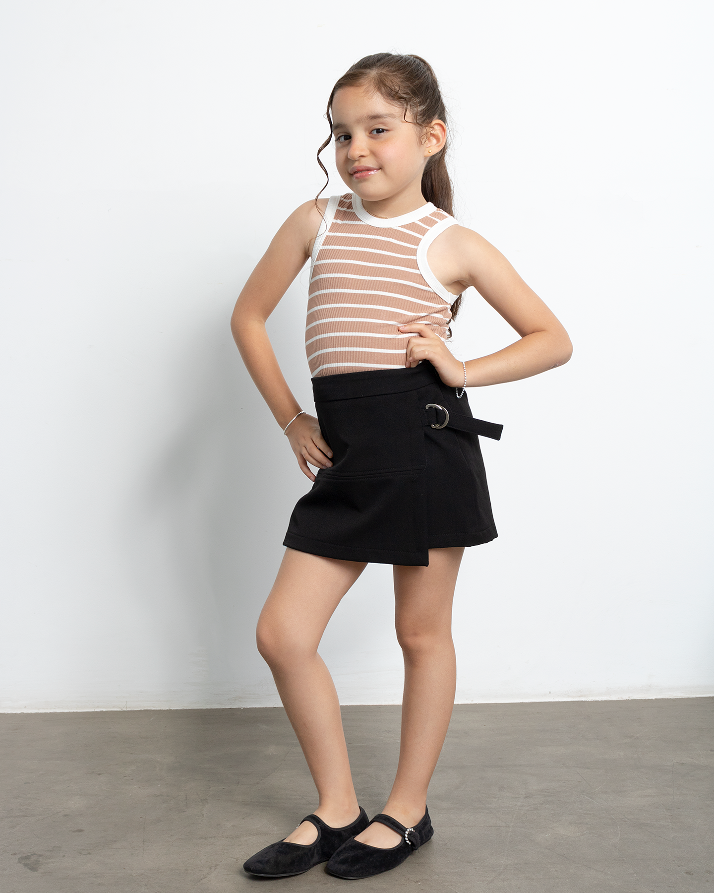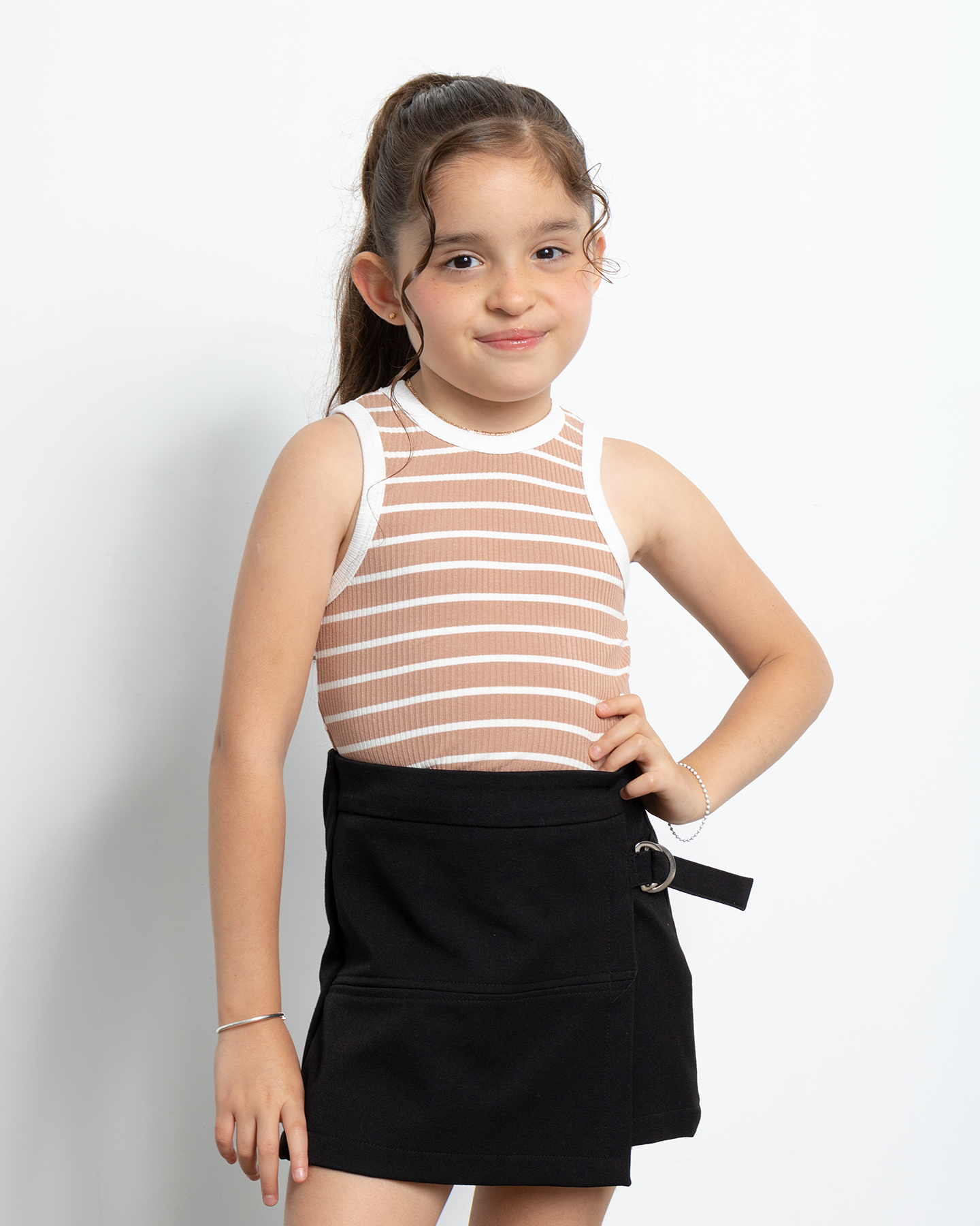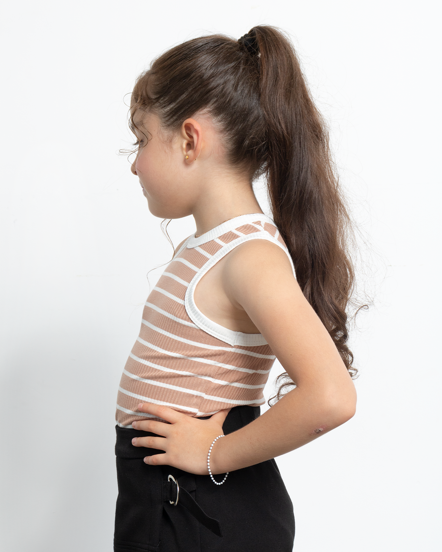 Nuestro Top Benny es una opción fresca y moderna. Este tank top de tejido rib con diseño listado horizontal en doble color es perfecto para un look casual y estilizado.