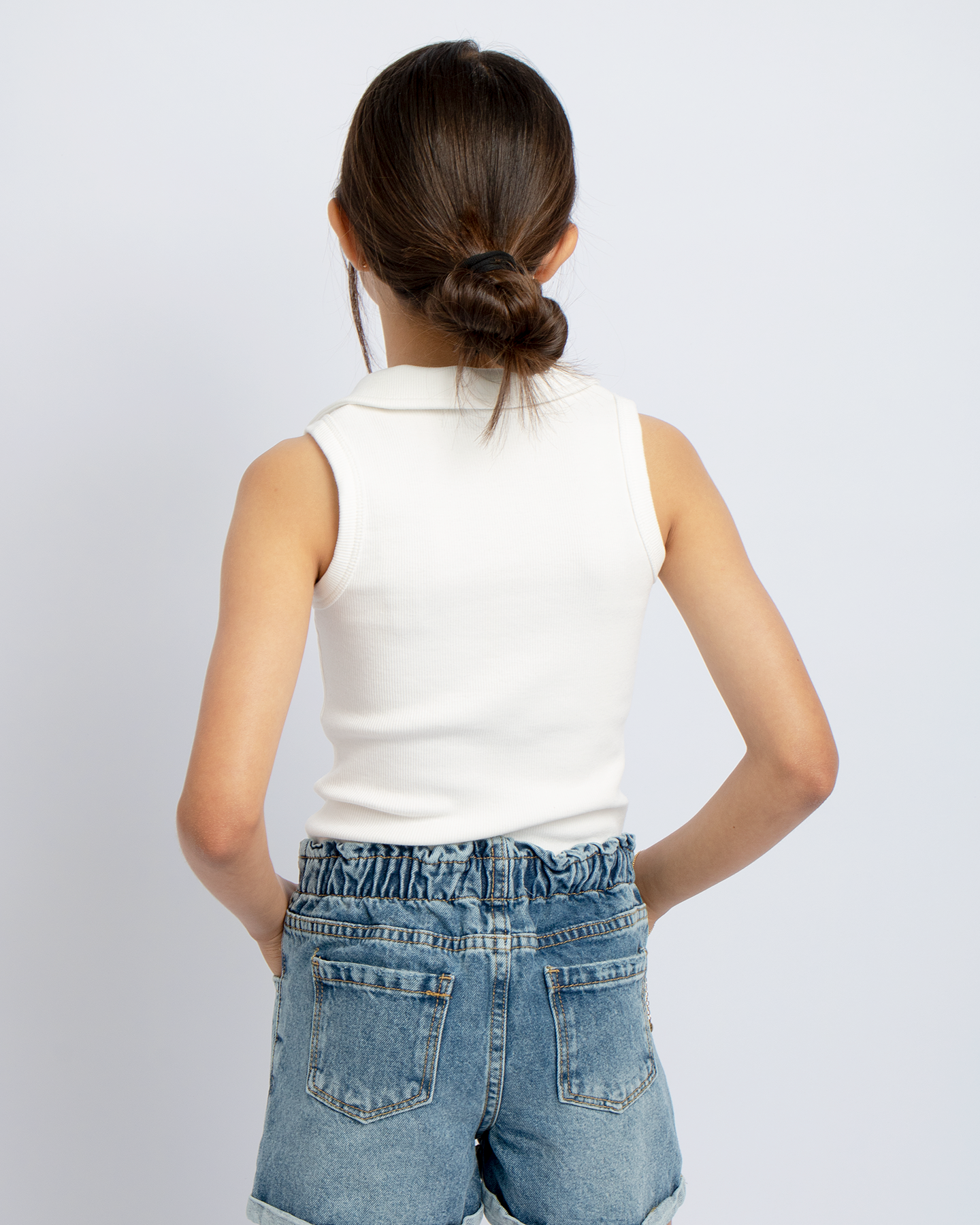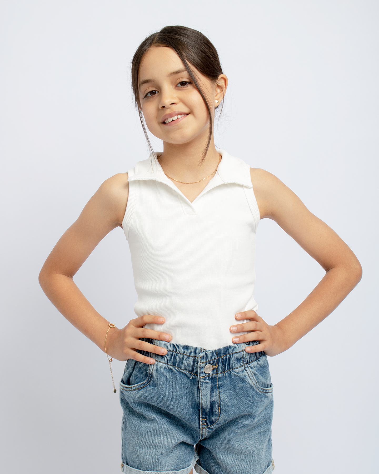 Nuestro Top Graciela es una opción ligera y fresca para los días soleados. Su diseño camisero sin mangas ofrece comodidad y estilo, perfecto para combinar con diferentes prendas.