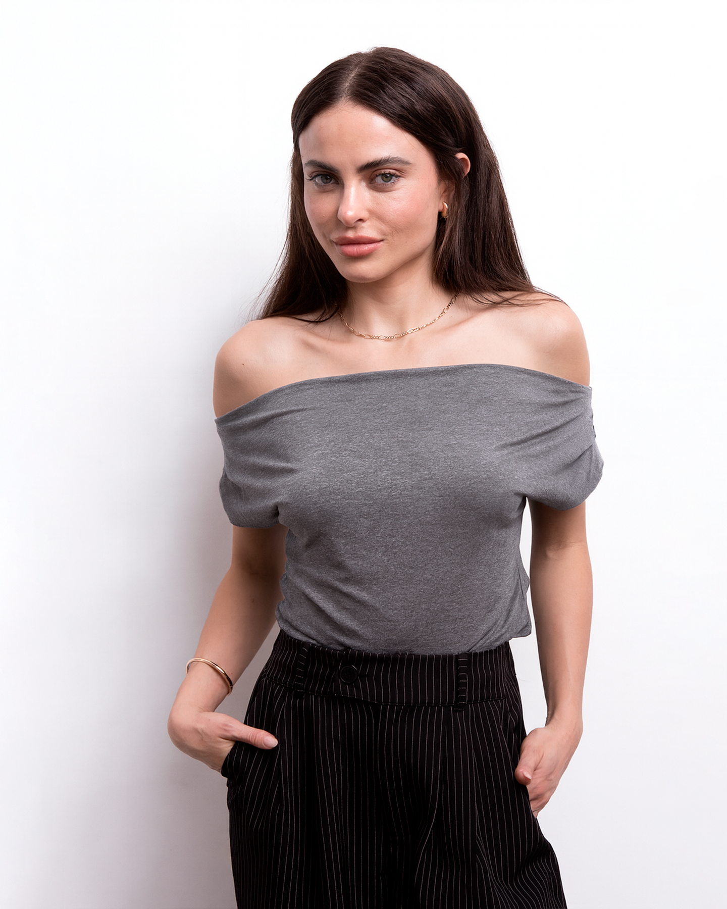 Un diseño minimalista y sofisticado que realza tu silueta con su escote off shoulder, además de ser bastante ligero y cómodo debido a su tela viscosa. Perfecto para un look femenino y versátil. Combínalo con jeans, faldas o shorts para lucir chic en cualquier ocasión.