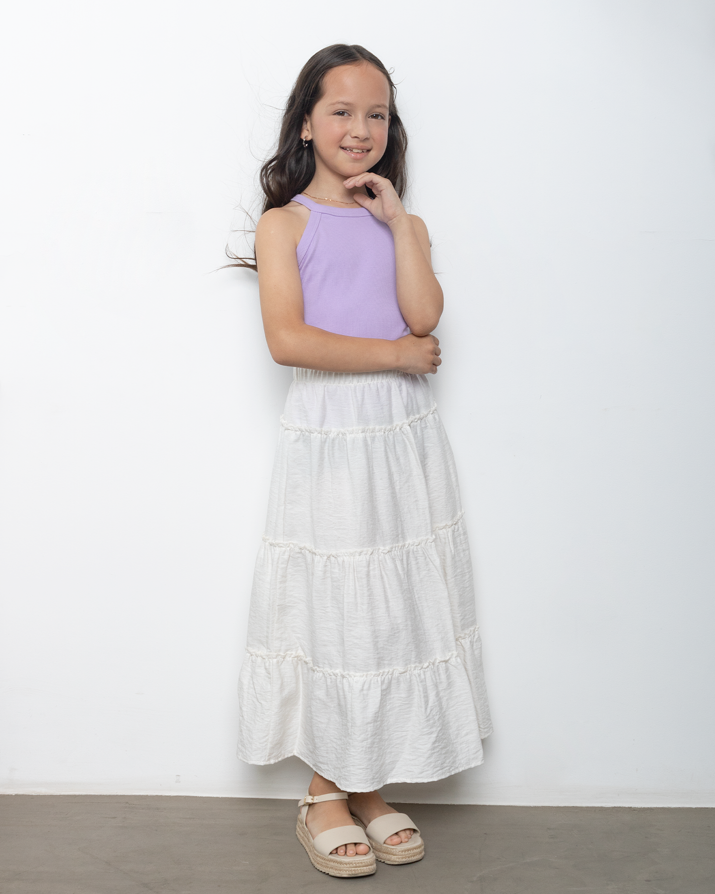 Nuestro Top Sofía es la elección ideal para las pequeñas que quieren destacar con estilo. Su diseño halter y los colores vibrantes aportan alegría y frescura a cualquier outfit.