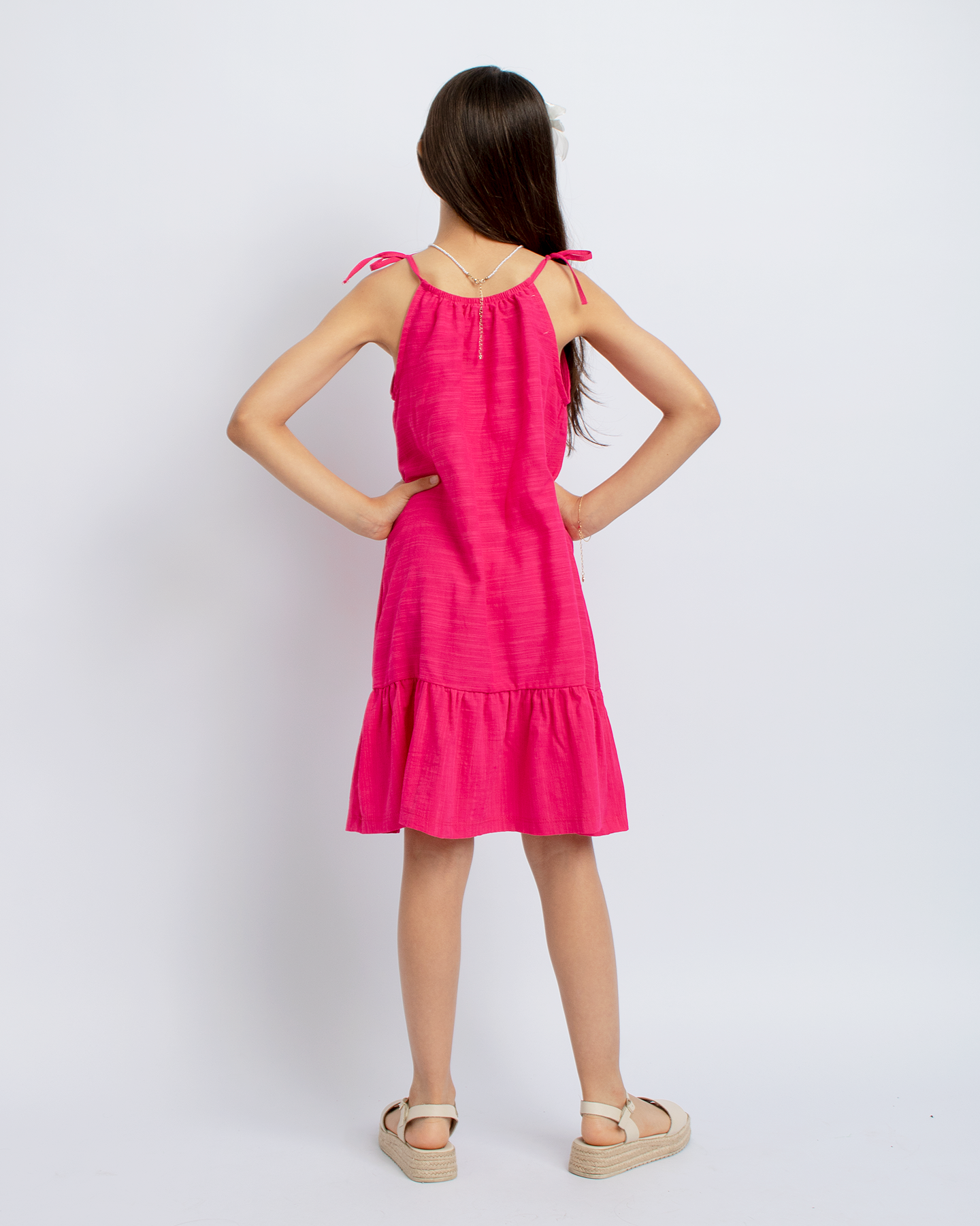 Nuestro Vestido MARIA JOSE es ideal para los días soleados. Confeccionado en lino, este vestido con tirantes presenta dos bolsillos delanteros, combinando estilo y funcionalidad.